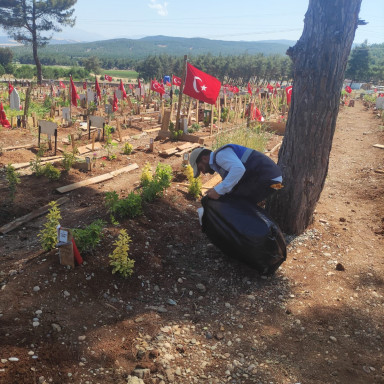 Kahramanmaraş Büyükşehir Belediyesi, yaklaşan Kurban Bayramı öncesi şehitlik ve mezarlıklarda hummalı bir şekilde temizlik çalışmalarını sürdürüyor. Çevre Koruma ve Kontrol Dairesi Başkanlığı’nca yürütülen çalışmalarla; mezarlıklarda ortak kullanım alanları dezenfekte edilirken, defin alanları yabani otlardan temizleniyor ve çevredeki evsel ve ambalaj atıkları da toplanarak bertaraf ediliyor. Büyükşehir Belediyesi’nden yapılan açıklamada, vatandaşların ahirete irtihal eden yakınlarının kabirlerini daha temiz, düzenli ve huzurlu ortamda ziyaret edebilmeleri için çalışmaların aralıksız devam ettiği belirtildi.