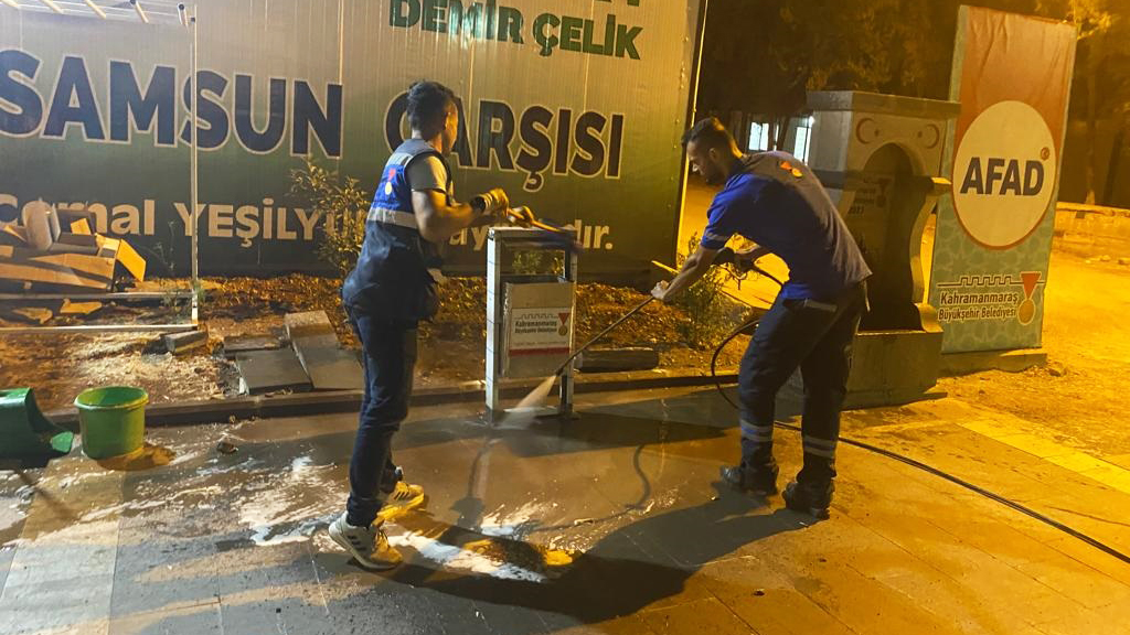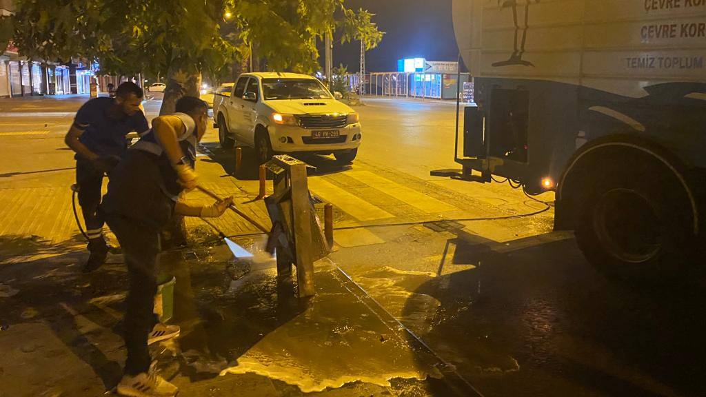 Büyükşehir Belediyesi, Kahramanmaraşlıların bayramlarını daha hijyenik ve huzurlu bir ortamda eda edebilmeleri için şehir genelinde temizlik ve dezenfeksiyon çalışmalarını kesintisiz sürdürüyor.