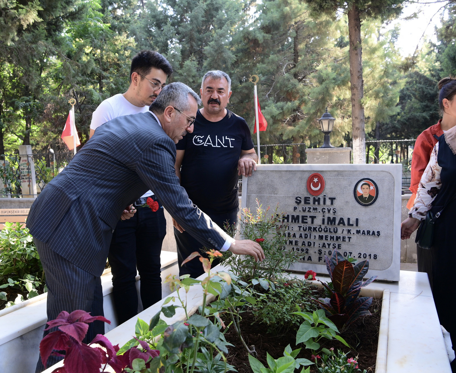 Kahramanmaraş Büyükşehir Belediye Başkanı Hayrettin Güngör, Kurban Bayramı’nın ilk günü Şeyh Adil Mezarlığı’nda şehitliği ziyaret ederek şehitleri kabirleri başında dualarla yâd etti. Önceki dönem Tarım ve Orman Bakanı ve TBMM Tarım, Orman ve Köyişleri Komisyonu Başkanı Prof. Dr. Vahit Kirişci, Vali Ömer Faruk Coşkun, Garnizon Komutanı Tuğgeneral Emin Mehmet Terzioğlu, ilçe belediye başkanları, AK Parti İl Başkanı Fırat Görgel ve sivil toplum kuruluşu temsilcilerinin de yer aldığı ziyarette, şehit mezarlarına karanfil bırakan Başkan Hayrettin Güngör, şehitliği ziyarete gelen şehit aileleri ve yakınlarının da acılarını paylaştı.