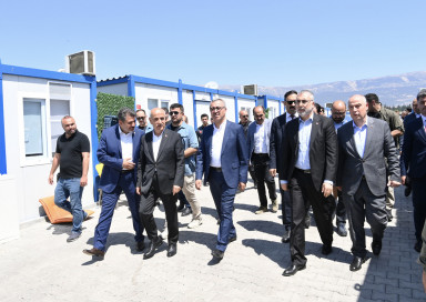 Büyükşehir Belediye Başkanı Hayrettin Güngör, bakanlık alanındaki çalışmaları yerinde incelemek üzere şehre gelen Çalışma ve Sosyal Güvenlik Bakanı Prof. Dr. Vedat Işıkhan ile katıldığı koordinasyon toplantısının ardından Baykar Geçici Konaklama Merkezi’ni ziyaret ederek depremzedelerle bir araya geldi.