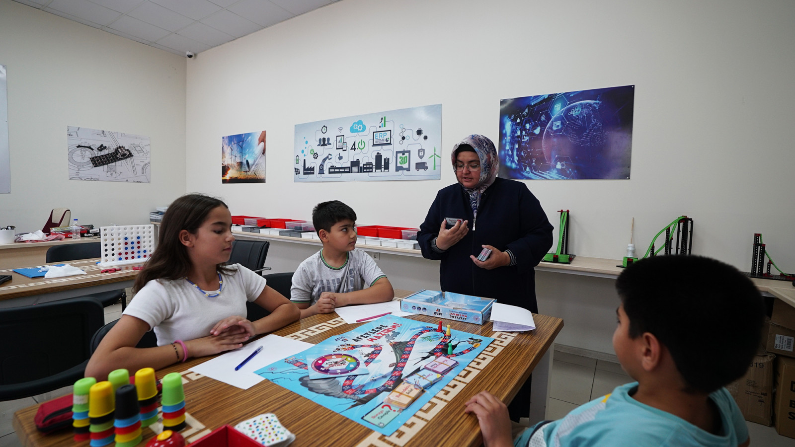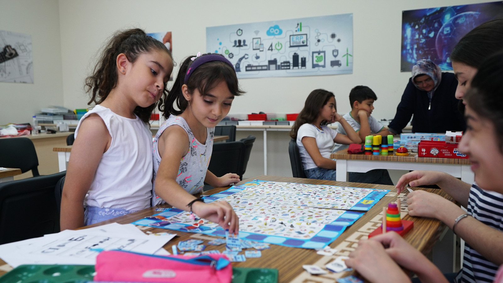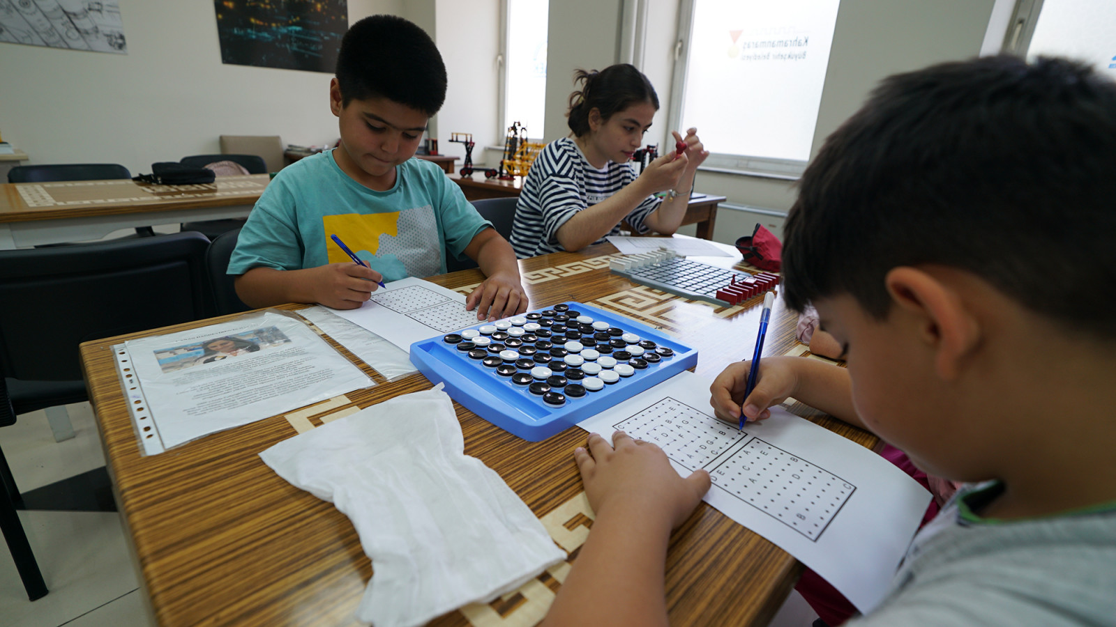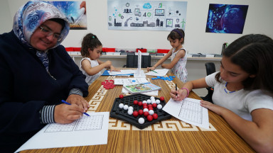 Büyükşehir Belediyesi’nin Meslek Edindirme ve Sanat Eğitimi Kursu’nda çocuklara yönelik düzenlenen Akıl ve Zekâ Oyunları Atölyesi’nde minikler bir yandan kişisel gelişimlerine katkı sağlarken bir yandan da sosyalleşiyor ve zamanı verimli bir şekilde değerlendiriyor.