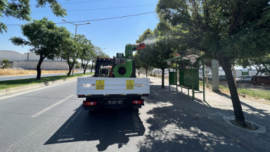55 araç ve 110 personelle şehirde ilaçlama çalışmalarını kesintisiz sürdüren Büyükşehir Belediyesi, zararlıların ve vektör canlıların yol açabileceği salgın hastalıkların önüne geçerek halk sağlığını korumayı hedefliyor.