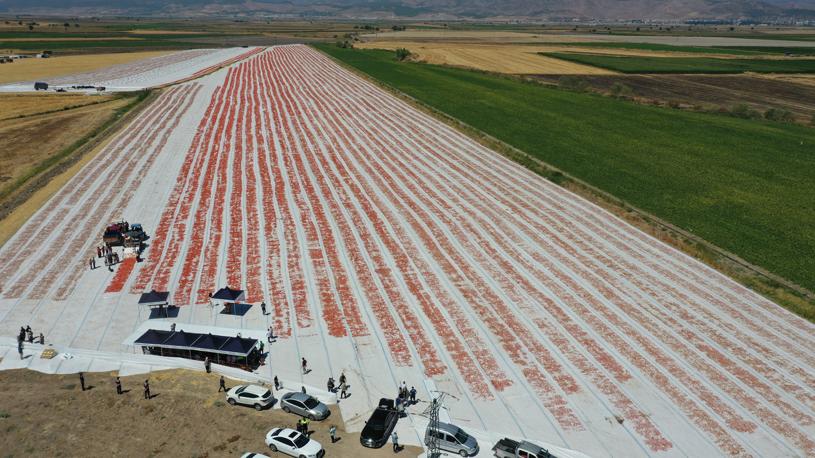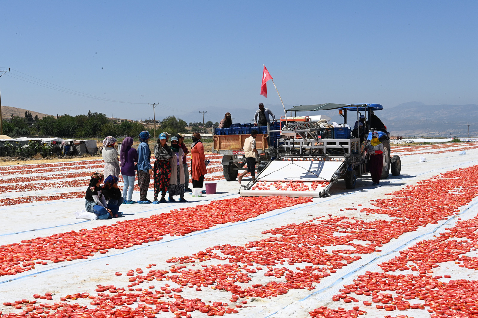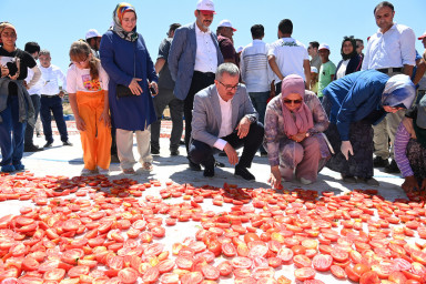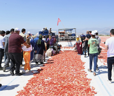 Kahramanmaraş’ın tarım alanında çok önemli bir yere sahip olduğunu belirten Büyükşehir Belediye Başkanı Hayrettin Güngör, “Şehrimiz birçok sektöre öncülük ediyor. Tarım alanında da hatırı sayılır bir yere sahibiz. Çok verimli topraklarımız var. Şehrimizin bazı kesimlerinde yılda birden fazla ürün hasat edilebiliyor. Kahramanmaraş’ımızın havası, suyu ve doğasıyla bütünleşen ürünlerin rayihası da çok farklı oluyor. Bugün de Türkoğlu’nda çiftçilerimizin ürettiği domatesin hasadına şahitlik ediyoruz. Domatesin kurutularak katma değerinin artırılması ve ihracata konu olması bizleri de mutlu ediyor. Emeği geçen üreticilerimize, tarım işçilerimize teşekkür ediyorum” dedi.