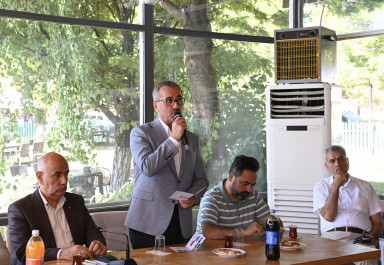 Başkan Güngör, Prof. Dr. Vahit Kirişci ve beraberindeki heyet devamında Mükrime Hatun Kültür Evi’nde düzenlenen toplantıda muhtarlar ve sivil toplum kuruluşu temsilcileriyle bir araya geldi. Burada katılımcıların taleplerini dinleyen ve sorularını yanıtlayan Başkan Hayrettin Güngör, “AB’den sağladığımız finansmanla ilçemize kazandırdığımız atıksu arıtma tesisi tamamlanarak hizmete alındı. 540 Milyon TL’lik bir yatırım. İçmesuyu, kanalizasyon ve arıtma Elbistan’ın en önemli sorunları arasında. Bu ihtiyaçların karşılanması noktasında yoğun gayret gösteriyoruz. 323 kilometrelik bir hat yenileniyor ve 5 adet depo inşa ediliyor. Bunun da 270 Milyon TL’lik bir bütçesi var” diye konuştu.