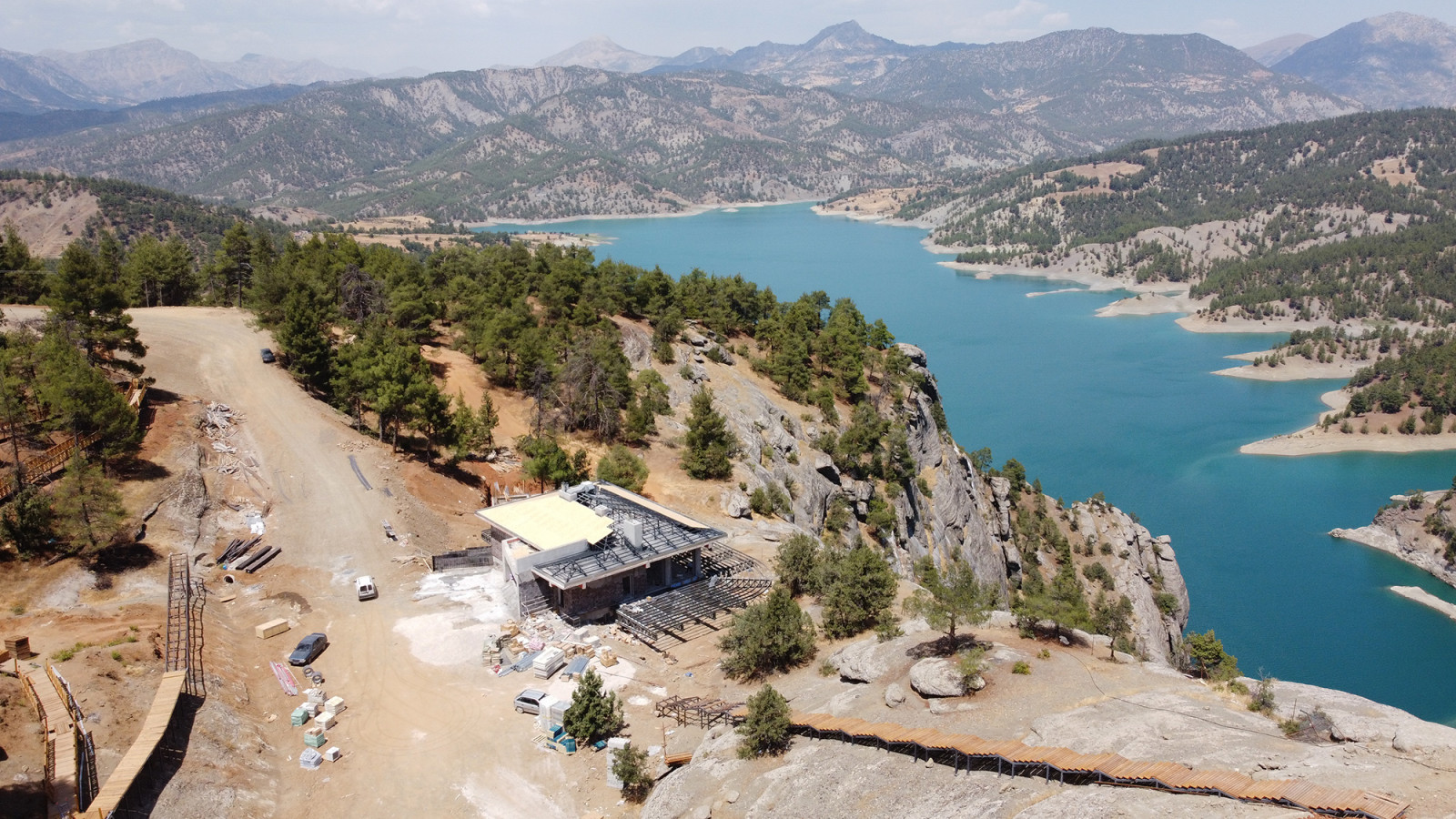 Kahramanmaraş Büyükşehir Belediyesi, 6 Şubat depremleri dolayısıyla yarım kalan projelerini bir bir tamamlamayı sürdürüyor. Şehrin en önemli doğal güzelliklerinden Ali Kayası’nda hayata geçirilen Cam Teras ve Turizm Tesisleri’nde de son çalışmalar gerçekleştiriliyor. 3 etaplı olarak planlanan projenin ilk etabında Ali Kayası’na cam teras, restoran, yürüyüş yolları ve otopark inşa edilirken, turizm tesisine ulaşım sağlayan 20 kilometrelik yolda da asfalt öncesi zemin hazırlıkları hızla devam ediyor. İnşa, çevre düzenleme, asfalt ve peyzaj uygulamalarının kısa süre içerisinde tamamlanmasıyla hizmete alınacak Ali Kayası Cam Teras ve Turizm Tesisleri’nin şehrin turizm potansiyelini ve katma değerini katbekat artırması hedefleniyor.
