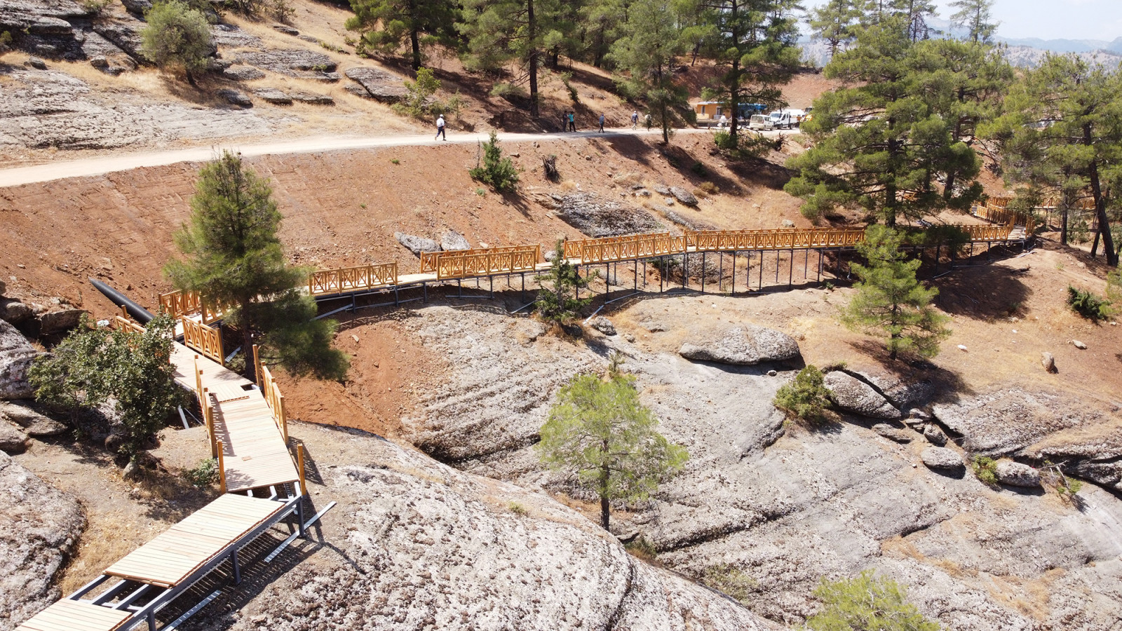 Şehrin katma değerini artıracak projeleri bir bir tamamlamayı sürdüren Kahramanmaraş Büyükşehir Belediyesi, şehrin en önemli doğal güzelliklerinden Ali Kayası’nda hayata geçirilen Cam Teras ve Turizm Tesisleri’nde de sona geldi. Bölgeye inşa edilen cam teras, restoran, yürüyüş yolu ve otoparkta son rötuşlar yapılırken, turizm tesisine ulaşım sağlayan 20 kilometrelik yolda da zemin hazırlığı tamamlanan kısımlarda asfalt serimine başlandı. Fen İşleri Dairesi Başkanlığı koordinesinde bölgede yürütülen inşa, çevre düzenleme, asfalt ve peyzaj uygulamalarının kısa süre içerisinde tamamlanmasıyla şehrin yeni gözde turizm tesisi hizmete alınacak. Ali Kayası Cam Teras ve Turizm Tesisleri’nin; manzarası, yeme içme mekânları, otoparkı, sosyal donatıları ve ulaşımıyla sadece Kahramanmaraş’ın değil bölgenin en gözde cam terası olması hedefleniyor.