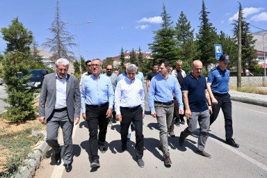 Kahramanmaraş Büyükşehir Belediye Başkanı Hayrettin Güngör, Vali Mükerrem Ünlüer ile Göksun, Elbistan, Ekinözü, Nurhak ve Çağlayancerit’te bir dizi ziyaret ve incelemelerde bulundu. İl Jandarma Komutanı Tuğgeneral Gökhan İnan ve İl Emniyet Müdürü Nurettin Gökduman’ın da yer aldığı programda Başkan Güngör ve Vali Ünlüer, Göksun’da Yantepe ve Elbistan’da Karaelbistan TOKİ Konutlarını ziyaret ederek incelemelerde bulundu. Kalıcı konutların son durumuna ilişkin bilgi alan heyetin sonraki durağı ise Ekinözü oldu. Ekinözü’nde mahalle konağı, kaymakamlık, aşağı ve yukarı içmeler ile sağlık turizm tesisinde incelemelerde bulunan heyet, ziyaretlerini Nurhak’ta sürdürdü. Hükümet Konağı, Merkez Camii, Atıksu Arıtma Tesisi, Kullar ve Tatlar mahalleleri ile Kaletepe Üs Bölgesi’ni ziyaret eden Başkan Güngör, Vali Mükerrem Ünlüer ve beraberindeki heyet, son olarak Çağlayancerit’e geçti. Çağlayancerit Belediyesi’ni ziyaret eden heyet, ilçeye kazandırılan Ceviz İşleme ve Paketleme Tesisi’nde de incelemelerde bulundu.