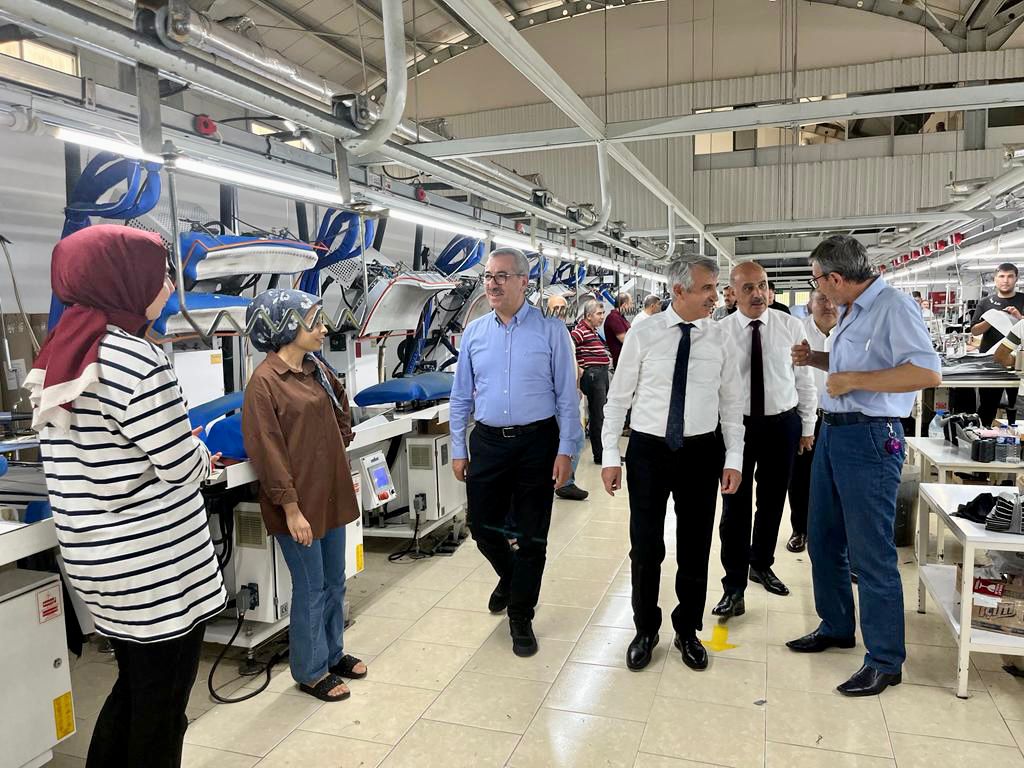 Vali Mükerrem Ünlüer ile Can Konfeksiyon’u ziyaret eden Başkan Güngör, “Deprem sonrası şehrimizde ticaretin canlanması noktasında yoğun gayret gösteren tüm firmalarımıza canı gönülden teşekkür ediyoruz” dedi.