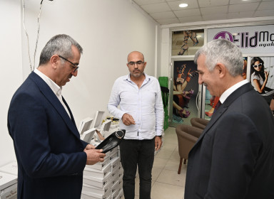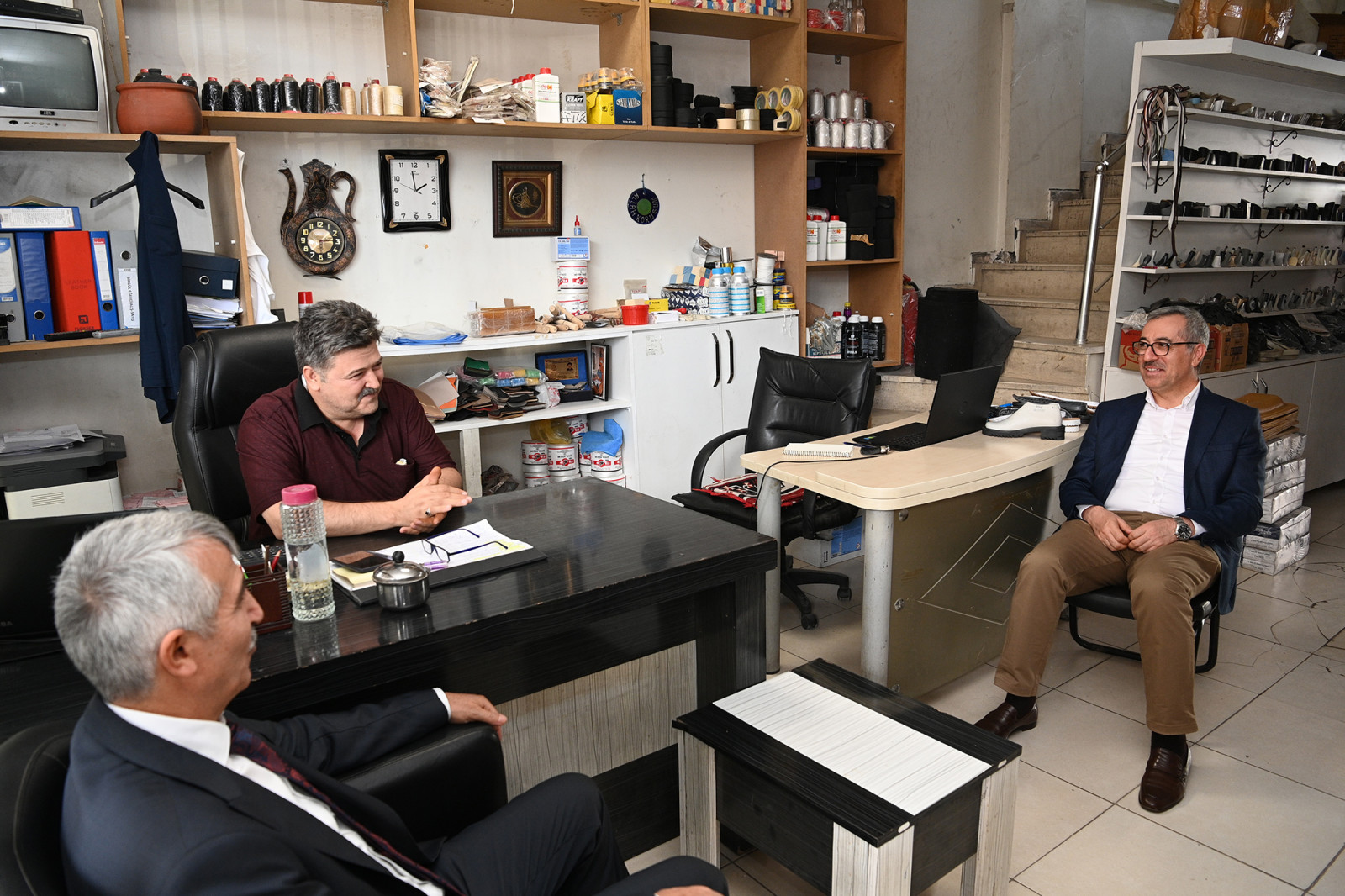 Vali Mükerrem Ünlüer ile Ayakkabıcılar Sitesi’ni ziyaret ederek esnaflarla bir araya gelen Başkan Güngör, “Şehrimizin ayakkabıcılık sektöründe önemli bir yere sahip olmasında emeği geçen tüm esnafımıza teşekkür ediyor, işlerinde kolaylıklar diliyoruz” dedi.