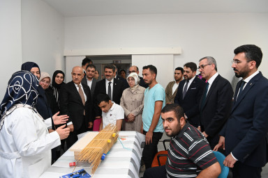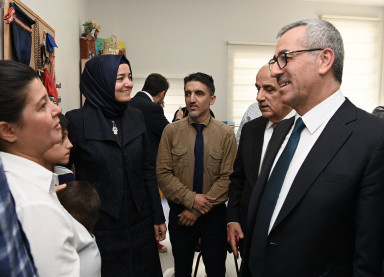 Kahramanmaraş Büyükşehir Belediye Başkanı Hayrettin Güngör; alanda yürütülen çalışmaları yerinde görmek ve bir dizi programa katılmak üzere şehre gelen AK Parti Genel Başkan Yardımcısı ve Sosyal Politikalar Başkanı Dr. Fatma Betül Sayan Kaya ile Kahramanmaraş Engelsiz Yaşam Merkezi’ni ziyaret ederek özel gereksinimli bireylerle bir araya geldi. TBMM Tarım, Orman ve Köyişleri Komisyonu Başkanı Prof. Dr. Vahit Kirişci, AK Parti Kahramanmaraş Milletvekilleri Ömer Oruç Bilal Debgici, Dr. Tuba Köksal, Mevlüt Kurt ve Prof. Dr. Mehmet Şahin ile AK Parti İl Başkanı Fırat Görgel’in de yer aldığı ziyarette heyet, özel gereksinimli bireylerle yakından ilgilenirken, yaşam merkezindeki faaliyetlere ilişkin de yetkililerden bilgiler aldı.