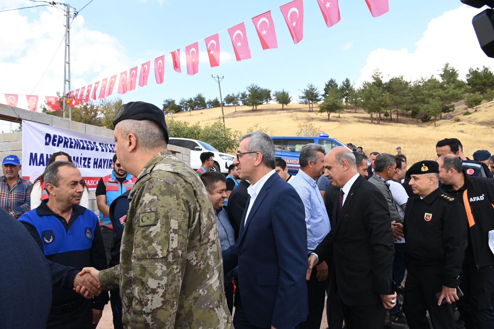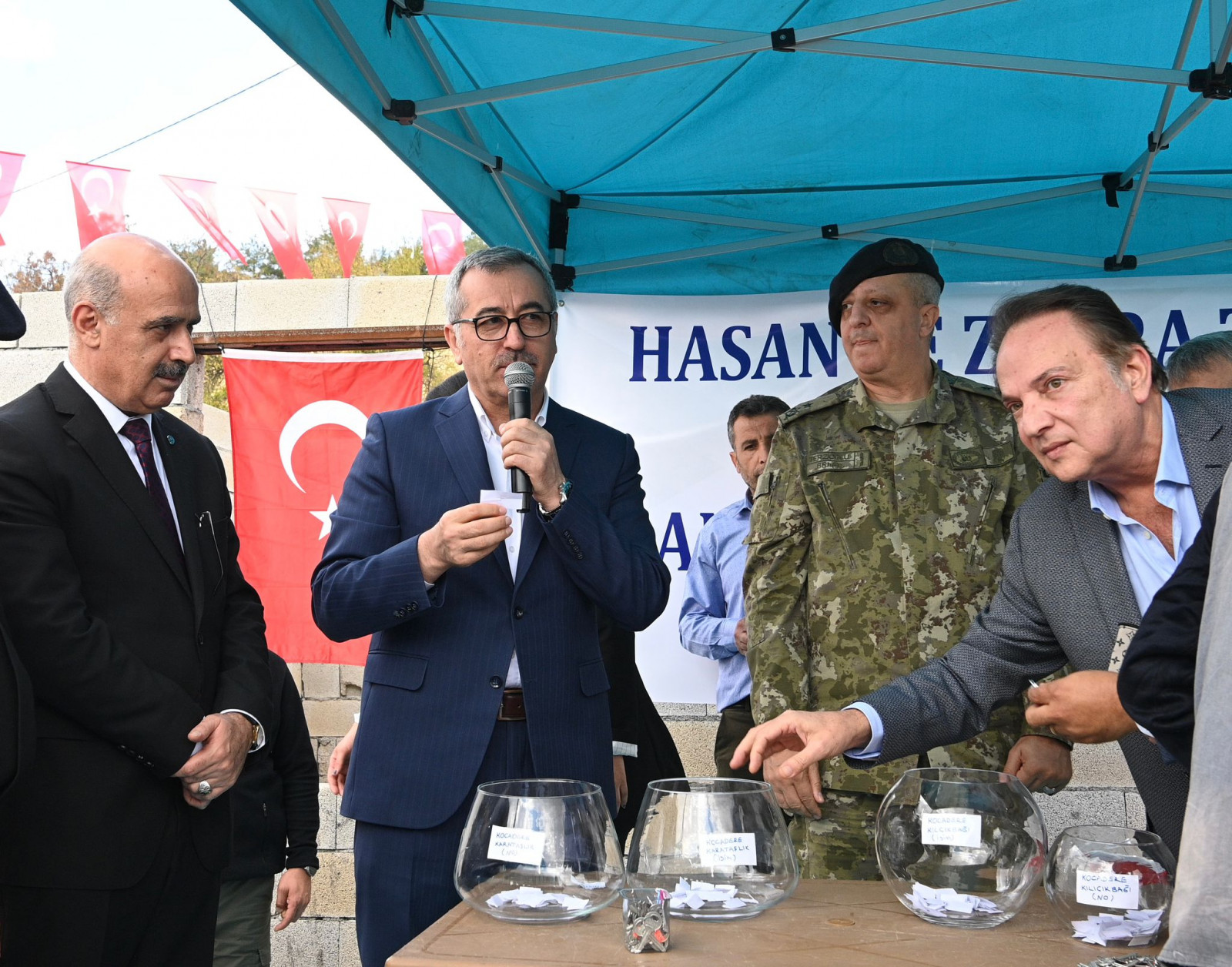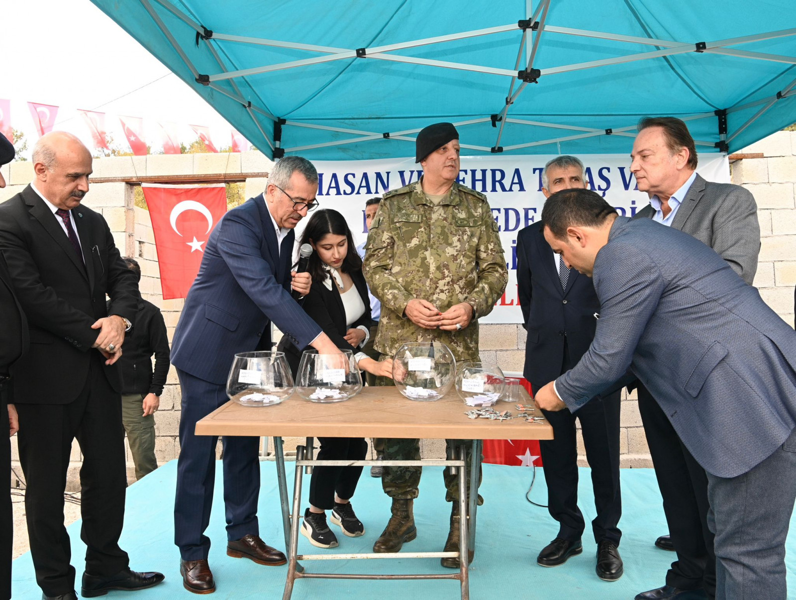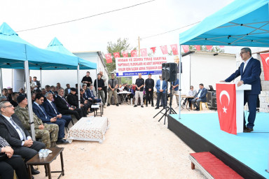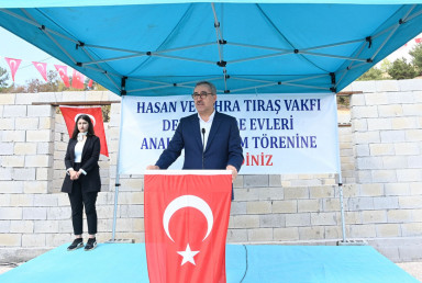 Vali Mükerrem Ünlüer, “Şehrimizde 45 bin TOKİ konutunun yapılmasına ilişkin projeler tamamlandı, 30 bininin yapımı devam ediyor. 15 bin adet konutun da ihalesi yapılıyor. İnşallah yıl sonuna kadar bu konutların 10 bin tanesi hak sahiplerine teslim edilecek. Bugün de Pazarcık ilçemizde 40 depremzede konutun teslimi için bir aradayız. Zehra ve Hasan Tıraş Vakfının değerli yöneticilerine teşekkür ediyor, Allah hayırlarını kabul etsin diyorum” ifadelerini kullandı.