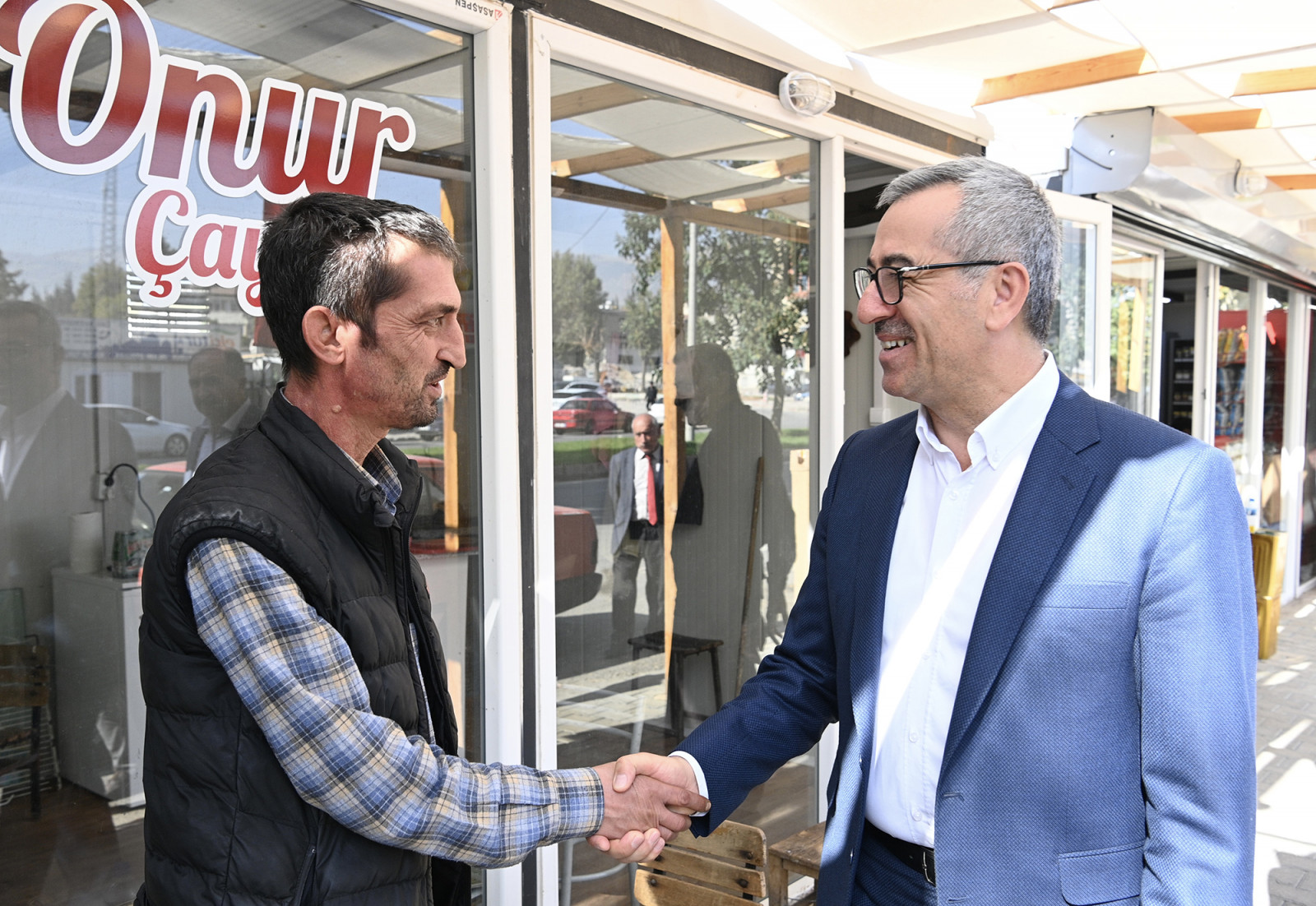 Şehrin her noktasında vatandaşlarla bir araya gelerek talep ve isteklerini çözüme kavuşturmak için gayretini sürdüren Kahramanmaraş Büyükşehir Belediye Başkanı Hayrettin Güngör, Dulkadiroğlu ilçesi Cumhuriyet Caddesi’nde oluşturulan geçici iş yerlerinde ticari faaliyetlerini sürdüren esnafları ziyaret etti. Esnaflarla sohbet ederek taleplerini dinleyen, ihtiyaçlarını tek tek not alan Başkan Hayrettin Güngör, “Yeni Kahramanmaraş’ın inşası noktasında kendi sorumluluklarını yerine getirmek için ellerinden geleni yapan esnaflarımızla bir araya gelmeyi sürdürüyoruz. Bugün de Cumhuriyet Caddesi’nde kurulan geçici iş yerlerinde ticari faaliyetlerini sürdüren esnaflarımızla bir araya gelerek hayırlı işler dileklerimizi ilettik, taleplerini dinledik. Hemşehrilerimizin kalıcı konut ve iş yerlerine en kısa sürede kavuşması için de gayretimizi sürdürüyoruz. Alt ve üstyapısıyla afetlere karşı dayanıklı yeni Kahramanmaraş’ı hep birlikte inşa ediyoruz. Bu süreçte emek veren herkese teşekkür ediyoruz” diye konuştu.