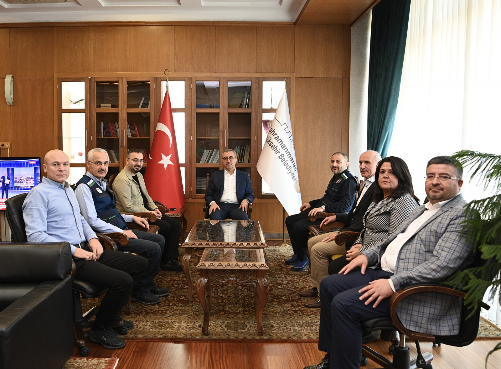 Kahramanmaraş Büyükşehir Belediye Başkanı Hayrettin Güngör, alanda yürütülen çalışmaları yerinde incelemek üzere şehre gelen İlbank Genel Müdürü Recep Türk'ü makamında ağırladı. Yeni Kahramanmaraş’ın imarı ve inşası noktasında yürütülen ve planlanan çalışmalara ilişkin Recep Türk’e bilgiler aktaran Başkan Hayrettin Güngör, “İlbank Genel Müdürümüz Sayın Recep Türk misafirimiz oldu. Genel Müdürümüzle yeni Kahramanmaraş’ın imarı ve inşası noktasında yürütülen ve planlanan çalışmalara ilişkin istişarelerde bulunduk. Depremlerde hasar alan altyapımızın yenilenmesi noktasında Çevre, Şehircilik ve İklim Değişikliği Bakanlığımız ve İlbank iş birliğiyle gerçekleştireceğimiz çalışmaları değerlendirdik. Hayata geçireceğimiz ortak projelerle altyapımızı en az 100 yıl boyunca şehrimize hizmet verecek şekilde yenileyeceğiz” ifadelerini kullandı.