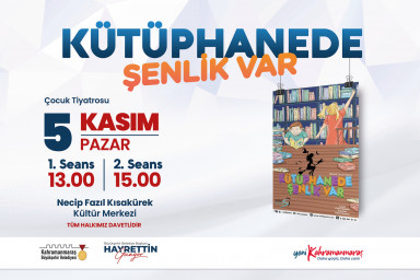 Şiir ve edebiyatın başkentinde kültür sanat etkinliklerini kesintisiz sürdüren Kahramanmaraş Büyükşehir Belediyesi, Kasım Kültür Sanat Sezonu’nu ‘Kütüphanede Şenlik Var’ adlı çocuk tiyatrosuyla açıyor. 5 Kasım Pazar günü Necip Fazıl Kısakürek Kültür Merkezi’nde düzenlenecek tiyatro gösterisi, saat 13.00 ve 15.00’da iki seans olarak sahne alacak. Ücretsiz olarak sahnelenecek gösteriye tüm çocuklar davet edilirken Büyükşehir Belediyesinden yapılan açıklamada, Kasım Kültür Sanat Sezonu’nda tiyatro gösterisinden konferansa, söyleşiden okur – yazar buluşmasına çeşitli etkinliklerin Kahramanmaraşlılarla buluşmaya devam edeceği belirtildi.