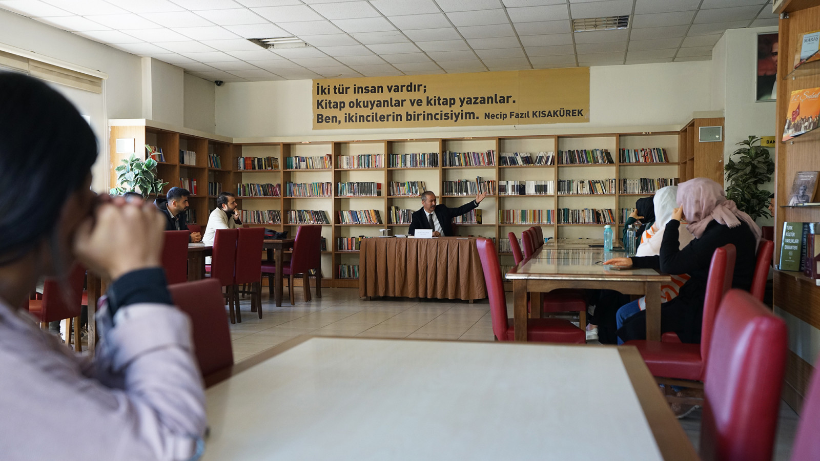 Şiir ve edebiyatın başkentinde kültür sanat etkinliklerini artırarak sürdüren Kahramanmaraş Büyükşehir Belediyesinin hayata geçirdiği ‘Kütüphane Söyleşileri’ kapsamında ilk program gerçekleştirildi. Cemil Meriç Halk Kütüphanesi’nde düzenlenen programda Şair – Yazar Ali Büyükçapar, edebiyatseverlerle bir araya geldi. Okurların büyük bir ilgiyle takip ettiği söyleşide Yazar Büyükçapar; kitap okumanın önemi, kitabın entelektüel birikime katkısı, günümüzde kitap okuma alışkanlığı gibi pek çok konuyu farklı perspektiften ele alırken, katılımcılardan gelen soruları da yanıtladı. Edebiyatseverler, düzenlenen söyleşi için Büyükşehir Belediyesi ve Yazar Ali Büyükçapar’a teşekkür etti. Büyükşehir Belediyesinden yapılan açıklamada, 1 Aralık tarihine kadar devam edecek Kütüphane Söyleşileri etkinlik takvimine https://kahramanmaras.bel.tr/duyuru/2023/11/17/kutuphane-soylesileri-etkinlik-takvimi internet adresinden ulaşılabileceği belirtildi.
