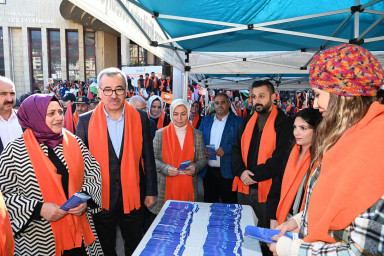 Yürüyüşün son noktası olan Necip Fazıl Kısakürek Kültür Merkezi’nde düzenlenen programda konuşan Büyükşehir Belediye Başkanı Hayrettin Güngör, “25 Kasım Kadına Yönelik Şiddete Karşı Uluslararası Mücadele Günü vesilesiyle savaş mağduru Filistinli kadınlar özelinde şiddet gören tüm kadınlar için bugün bir aradayız. Öncelikle sevgisiyle dünyayı güzelleştiren hanım kardeşlerimizi sevgi, saygı ve hürmetle selamlıyorum. Ne yazık ki 7 Ekim’den bu yana şiddetin bütün türlerinin en acımasız haliyle yaşandığı bir vahşete şahitlik ediyoruz. İsrail, Gazze’de kadın, çocuk demeden herkesi ve her yeri vahşice bombalıyor. Camileri, hastaneleri hedef alıyor. Gazze halkı, en temel insani ihtiyaçlara bile ulaşamıyor. Bu konuda dünyanın sessiz kaldığına şahit oluyoruz. Türk halkı ve lideri Sayın Recep Tayyip Erdoğan, her ortamda en yüksek sesle bu zulme hayır diyor. Filistinli kardeşlerimiz de inşallah hak ettiği bağımsızlığa kavuşacaktır” cümlelerini kaydetti.