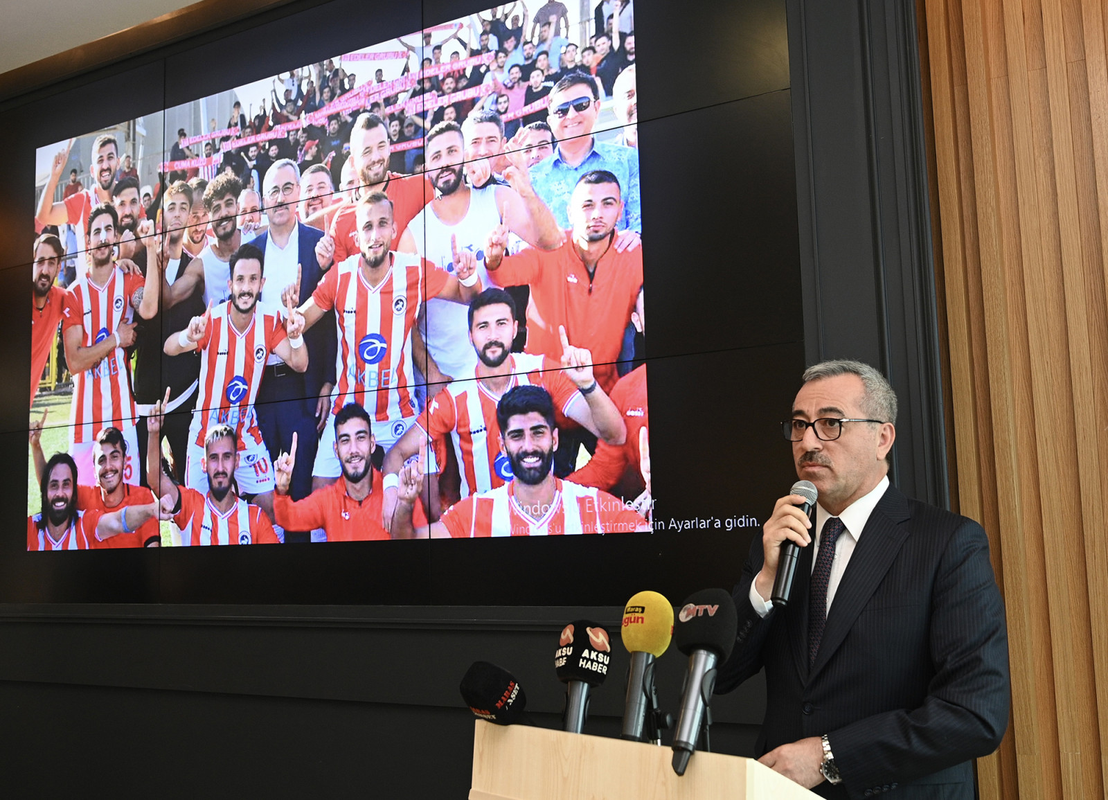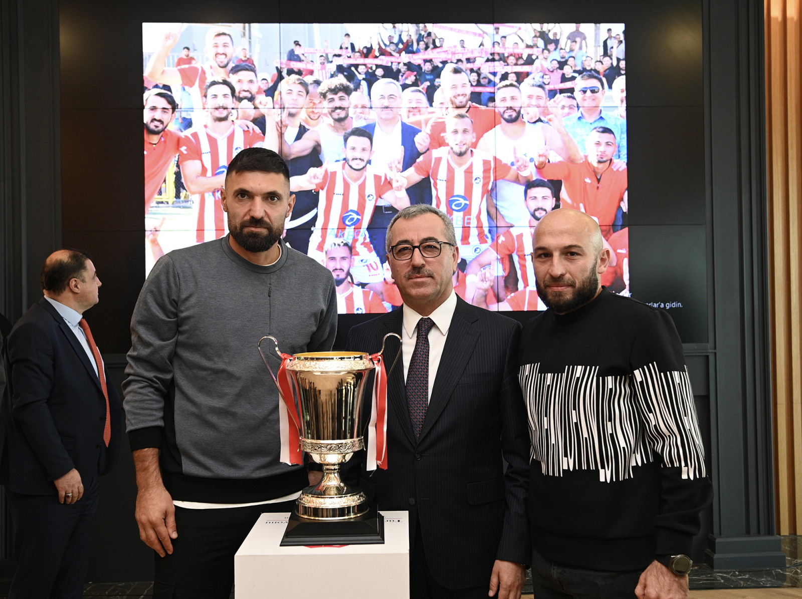 Şehre kazandırılması planlanan yeni stadyum hakkında da bilgiler aktaran Başkan Güngör, “Deprem öncesi stadyum projemiz vardı. Gençlik ve Spor Bakanlığımız ile yaptığımız görüşmeler neticesinde Gaziantep Yolu üzerine yeni bir stadyum kazandıracağız. Çok kapsamlı bir spor kompleksi olacak. 12 Şubat Stadyumunun bulunduğu alan ise; kültür, spor ve sosyal alan olarak değerlendirilecek. Hemşehrilerimiz için cazibe alanı oluşturacağız” dedi. Konuşmaların ardından şampiyonluk kupası Büyükşehir Belediye Başkanı Hayrettin Güngör ve takım kaptanı Rasim Mutlu’nun ellerinde yükseldi.