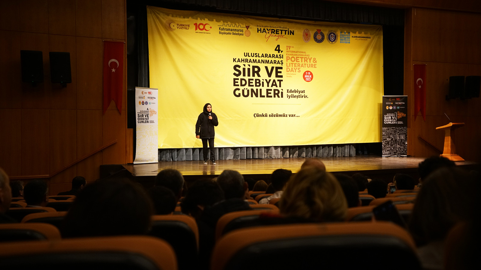 Şiir ve edebiyatın başkentinde Kahramanmaraş Büyükşehir Belediyesi tarafından ‘Edebiyat İyileştirir’ mottosuyla bu yıl 4’üncüsü düzenlenen Uluslararası Şiir ve Edebiyat Günleri, dördüncü gününde şiir şölenine ev sahipliği yaptı. İl Milli Eğitim Müdürlüğü iş birliğiyle Necip Fazıl Kısakürek Kültür Merkezi’nde gerçekleştirilen ‘Liseler Arası Şiiri Güzel Okuma Yarışması’ finalinde öğrenciler birbirinden değerli eserleri jüri karşısında seslendirdi. Her bir yarışmacı performansıyla jüri ve dinleyicilerden yoğun alkış alırken; Muhammed Esat Demir, Necip Fazıl Kısakürek’in Sakarya adlı şiiriyle yarışmada birinciliği göğüsledi. Sezai Karakoç’un Ey Sevgili şiirini okuyan Arzu Bengisu Yay ikinci olurken; Saltuk Buğra Gürlek, Necip Fazıl Kısakürek’in Destan adlı şiiriyle yarışmada üçüncülük elde etti.