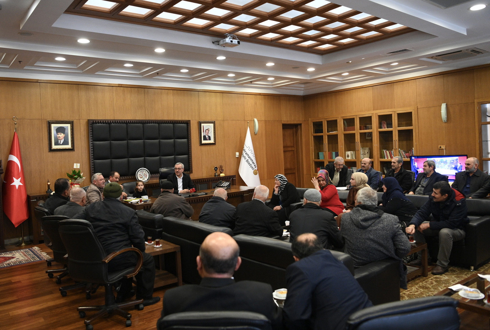 Kahramanmaraş Büyükşehir Belediye Başkanı Hayrettin Güngör, 40 yıllık tapu sorunu çözülen ve geçtiğimiz günlerde tapu teslim töreni gerçekleştirilen Çamlık Mahallesi sakinlerini misafir etti. Tapu sorununun çözüme kavuşturulma süreci ve mahallenin ihtiyaçlarının konuşulduğu ziyarette Mahalle Muhtarı Abdullah Ay ve mahalle sakinleri, Çamlık’ın kronikleşen tapu sorununun çözüme kavuşturulmasında büyük gayret gösteren Başkan Hayrettin Güngör’e teşekkür etti. Büyükşehir Belediye Başkanı Hayrettin Güngör de mahallenin ihtiyaçlarının peyderpey giderilmeye devam edeceğini belirterek nazik ziyaretleri için Muhtar Abdullah Ay ve mahalle sakinlerine teşekkür etti.