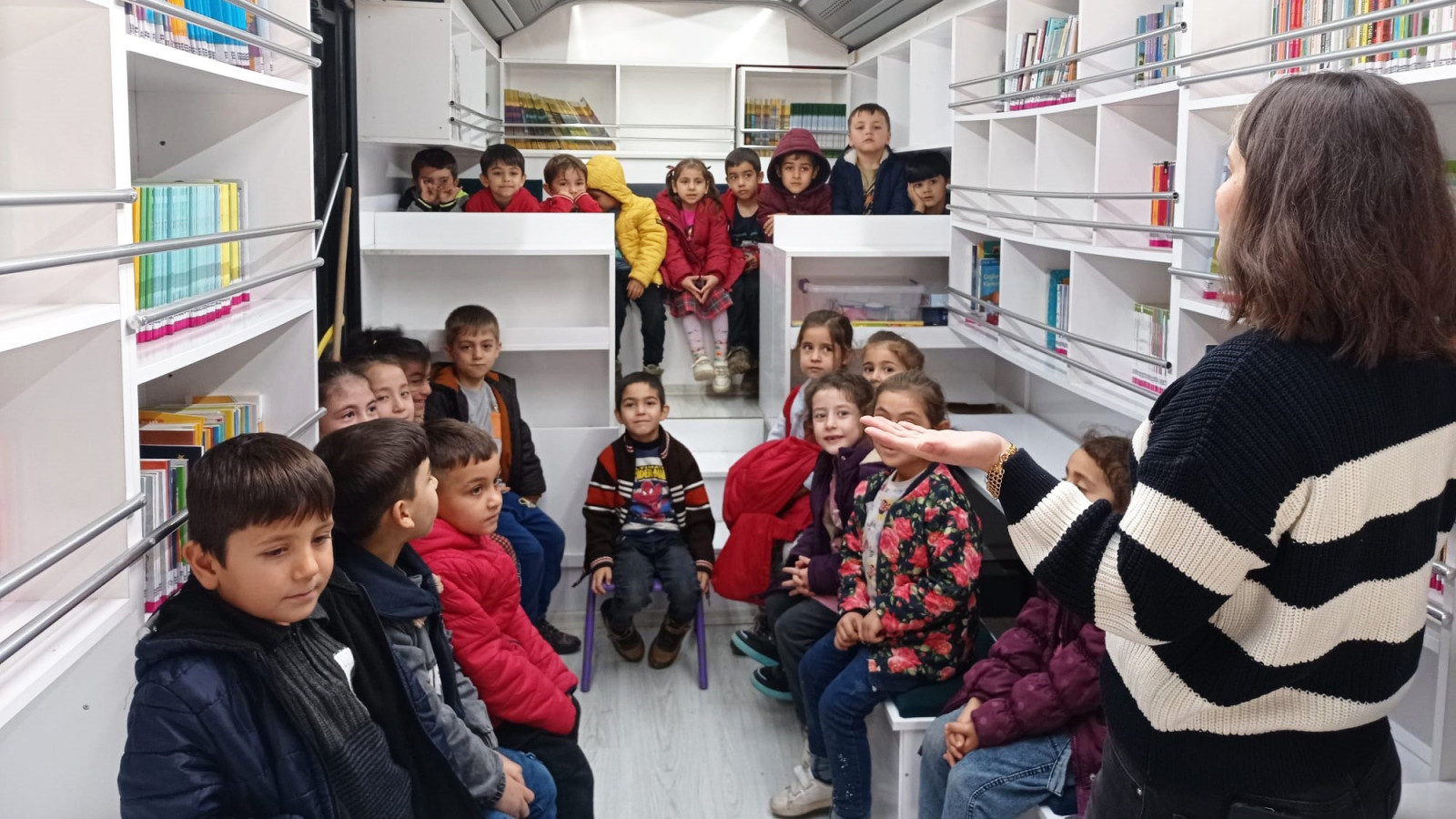 Büyükşehir Belediyesinin örnek projesi Mobil Çocuk Kütüphanesi, Onikişubat ve Türkoğlu’nda minik öğrencilerle bir araya geldi.