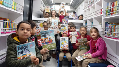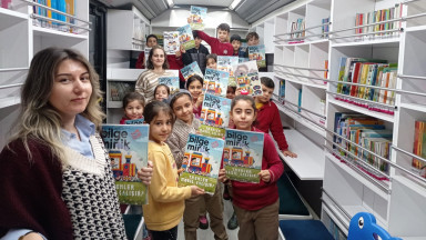 Sosyal belediyecilik çerçevesinde daima vatandaşların yanında olan Kahramanmaraş Büyükşehir Belediyesinin örnek projesi Mobil Çocuk Kütüphanesi, şehrin çeşitli noktalarında öğrencilerle buluşmayı sürdürüyor. Şehrin özellikle kırsal mahallelerinde kitaba ulaşmakta güçlük çeken öğrencileri ziyaret ederek gönüllere dokunan Mobil Kütüphane’nin Onikişubat’ta Döngel Muhsin Yazıcıoğlu İlkokulu ve Türkoğlu ilçesinde Kılılı Nazlı Balduk Anaokulu ve İlkokuluna gerçekleştirdiği ziyarette birbirinden renkli görüntüler ortaya çıktı. Mobil Çocuk Kütüphanesi’nde masal okuma, boyama, puzzle gibi birbirinden eğlenceli ve öğretici etkinliklerin gerçekleştirildiği ziyaretlerde yüzlerce öğrenciye çeşitli kitap ve dergiler de hediye edildi. Ziyaretten duyduğu memnuniyeti belirten öğrenciler, Büyükşehir Belediyesine teşekkür etti. Büyükşehir Belediyesinden yapılan açıklamada, Mobil Çocuk Kütüphanesi’nin şehrin çeşitli noktalarında miniklerle buluşmaya devam edeceği belirtildi.