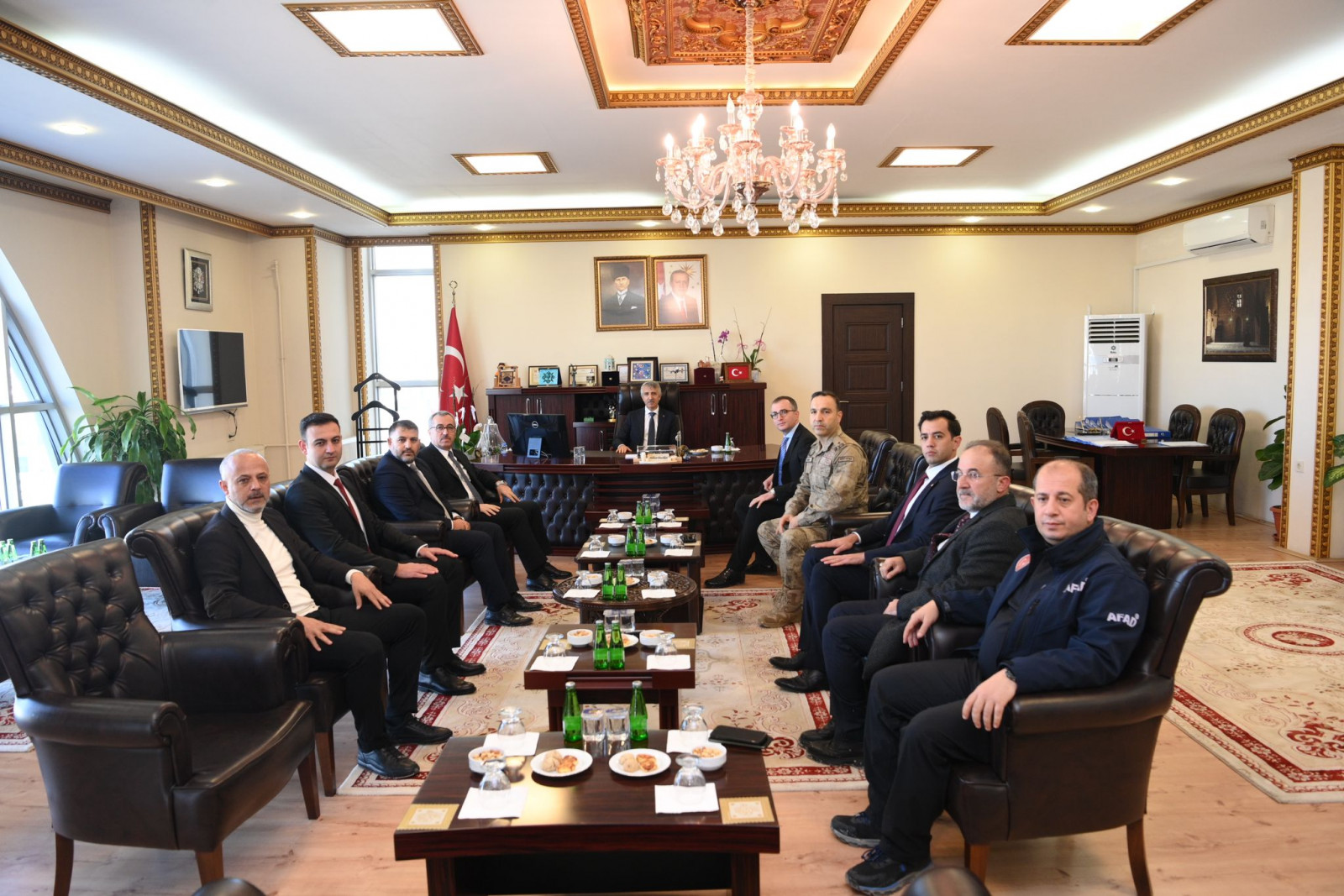 Yeni Kahramanmaraş’ın imarı ve inşası noktasında yoğun gayretini sürdüren Kahramanmaraş Büyükşehir Belediye Başkanı Hayrettin Güngör, Vali Mükerrem Ünlüer ile Afşin’de bir dizi ziyaret ve incelemelerde bulundu. İl Jandarma Komutanı Tuğgeneral Gökhan İnan, İl Emniyet Müdürü Nurettin Gökduman ve AFAD İl Müdürü Tayfun Temur’un da yer aldığı program kapsamında Başkan Güngör ve Vali Ünlüer; Afşin Kaymakamı Mehmet Naim Akgül ve Belediye Başkanı Mehmet Fatih Güven’i ziyaret etti. Devamında Afşin Millet Bahçesi ve Afşin-Elbistan Termik Santrali’nde incelemelerde bulunan heyet, Ashab-ı Kehf Cami altında bulunan halk kütüphanesinde gençlerle bir araya geldi. Heyet programı kapsamında, Afşinbey Caddesi’nde ticari faaliyetlerini sürdüren esnafları da iş yerlerinde ziyaret ederek hayırlı işler temennisinde bulundu.