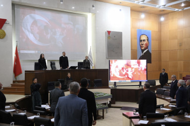 Kahramanmaraş Büyükşehir Belediyesi Aralık ayı Olağan Meclis Toplantısı gerçekleştirildi. Büyükşehir Belediyesi Meclis Toplantı Salonu’nda Başkanvekili Hanifi Toptaş başkanlığında gerçekleştirilen yılın son meclis toplantısı, saygı duruşu ve İstiklal Marşı’nın okunmasıyla başladı. İlçe belediye başkanları ve meclis üyelerinin katılımıyla gerçekleştirilen toplantıda; ek ödenek talepleri, işçi vizelerinin yenilenmesi, taşınmaz devri ve imar plan teklifleri gibi pek çok gündem maddesi görüşülerek karara bağlandı. Başkanvekili Hanifi Toptaş, 2023 yılının son meclis toplantısının ve alınan kararların hayırlara vesile olmasını dileyerek toplantıyı sonlandırdı.