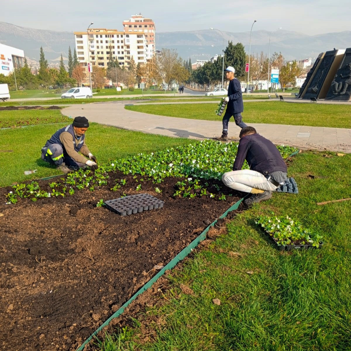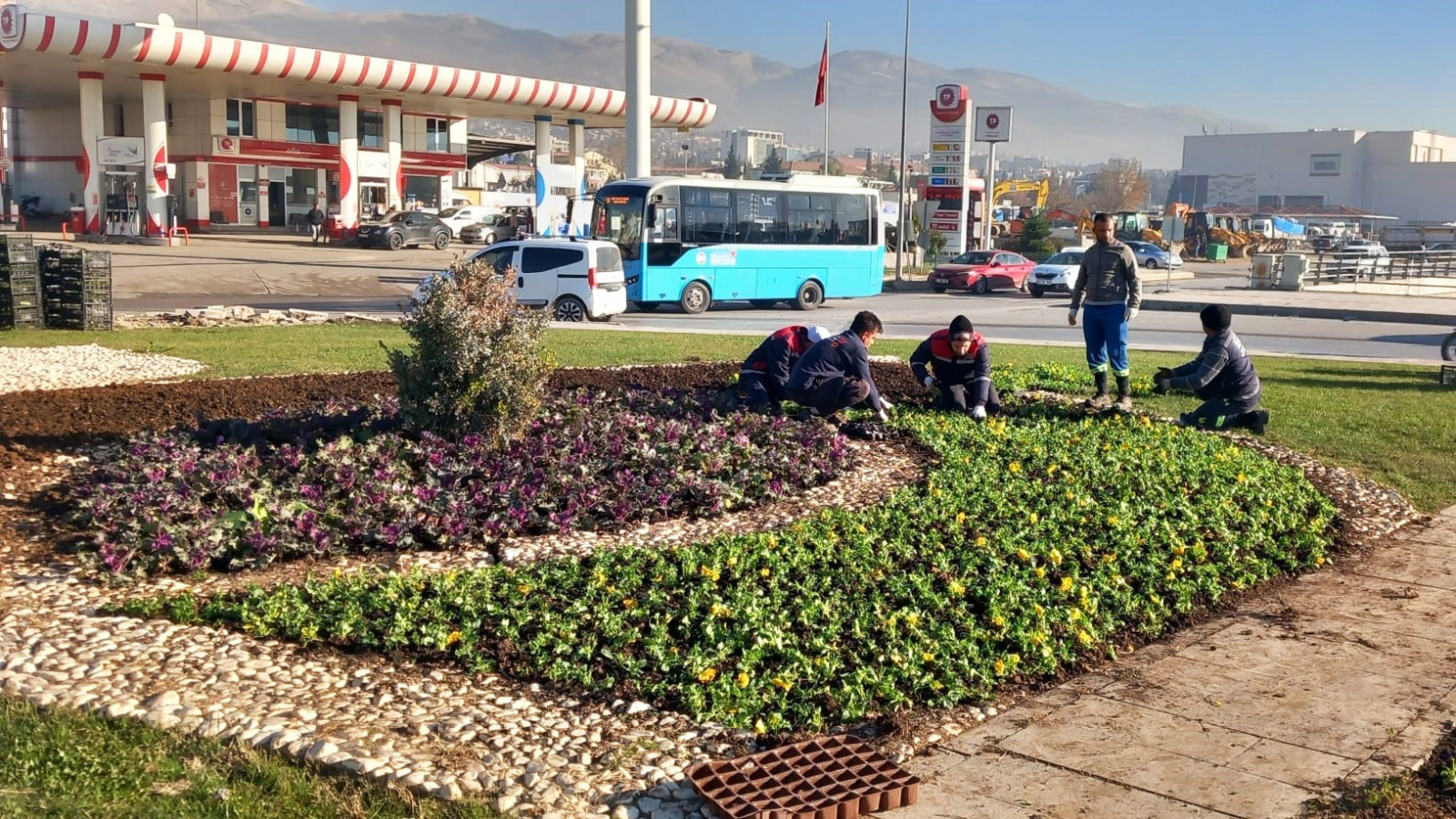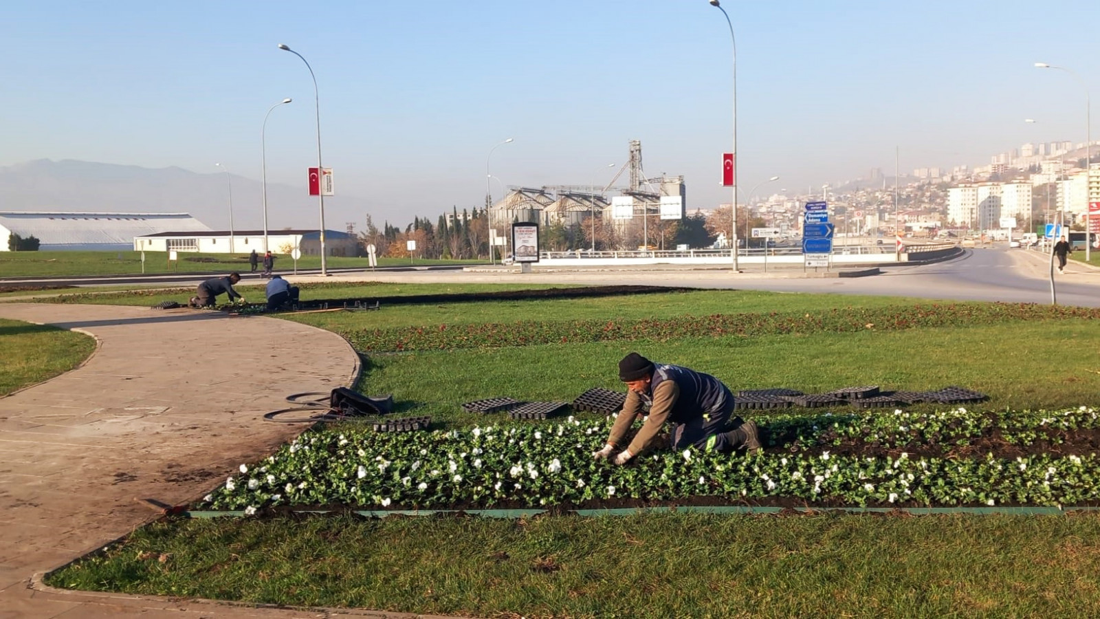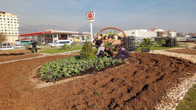 Kent estetiğini sağlamak için çevre düzenlemelerini sürdüren Büyükşehir Belediyesi, peyzaj ve bitkilendirme çalışmalarıyla da kavşak ve refüjleri renklendiriyor.