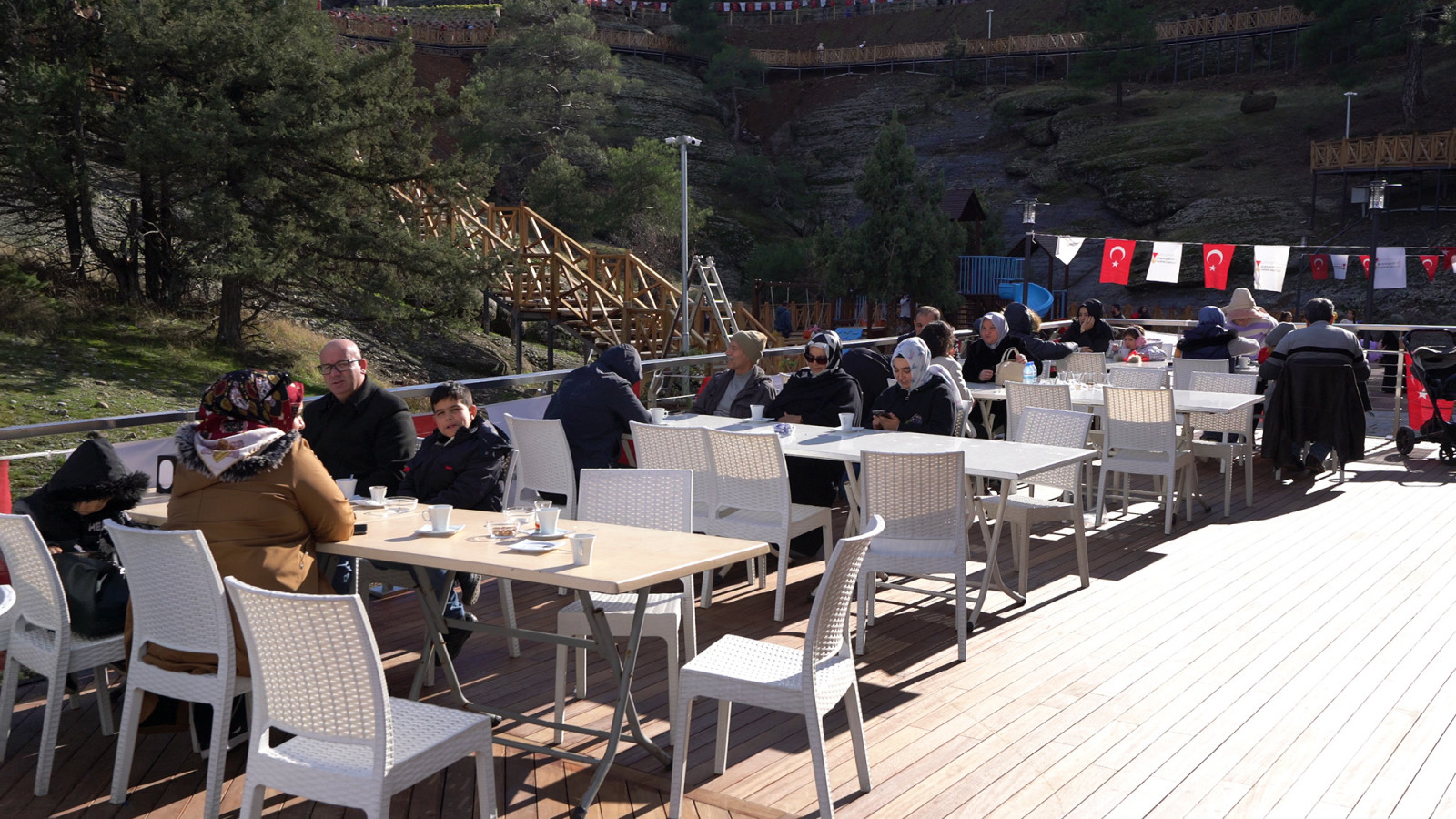Kahramanmaraş Büyükşehir Belediye Başkanı Hayrettin Güngör’ün vizyon projelerinden Ali Kayası Cam Teras ve Turizm Tesisleri, misafirlerini ağırlamaya devam ediyor. İlk etabı tamamlanmak üzere olan ve hizmete açılan Ali Kayası Cam Teras, hafta sonu ziyaretçi akınına uğradı. 10 bine yakın vatandaşın ziyaret ettiği turizm tesisi; doğası, atmosferi, yeşil ve maviyi buluşturan eşsiz manzarasıyla misafirlerini adeta büyüledi. Cam teras, restoran, ahşap yürüyüş yolları, otopark ve çocuk oyun gruplarıyla ziyaretçilerini kendine hayran bırakan tesis, şimdiden şehrin gözde turizm alanları arasındaki yerini aldı. Alt ve üstyapısı, ulaşımı ve sosyal donatılarıyla vatandaşların büyük beğenisini kazanan, sadece Kahramanmaraşlıların değil civar şehirlerden gelen vatandaşların da uğrak noktası haline gelen Ali Kayası Cam Teras ve Turizm Tesisleri’nde yürütülen çevre düzenlemelerinin de kısa sürede tamamlanması hedefleniyor.