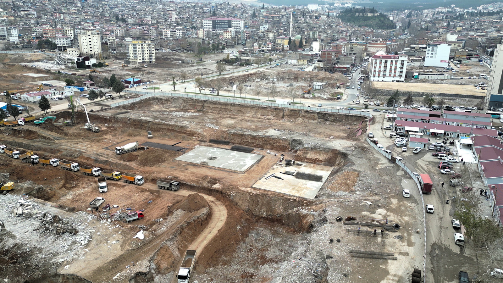 Yeni Kahramanmaraş vizyonu noktasında kalıcı konuttan köy evine, sosyal donatıdan yeşil alanlara, turizmden sağlık tesislerine tüm alanlarda çalışmalar hummalı bir şekilde devam ederken Çevre, Şehircilik ve İklim Değişikliği Bakanlığı koordinesinde şehir merkezinde hayata geçirilen kentsel tasarım projesi de hızla yükseliyor. 5 farklı noktada şantiyeler kurulurken Azerbaycan Devleti tarafından Hayrullah Mahallesi’nde hayata geçirilen bin bağımsız bölümlük Azerbaycan Mahallesi’nin de inşası devam ediyor. TOKİ tarafından yürütülen proje kapsamında alanda kazı, dolgu ve temel hazırlıkları sürüyor.