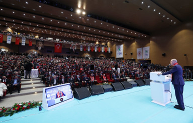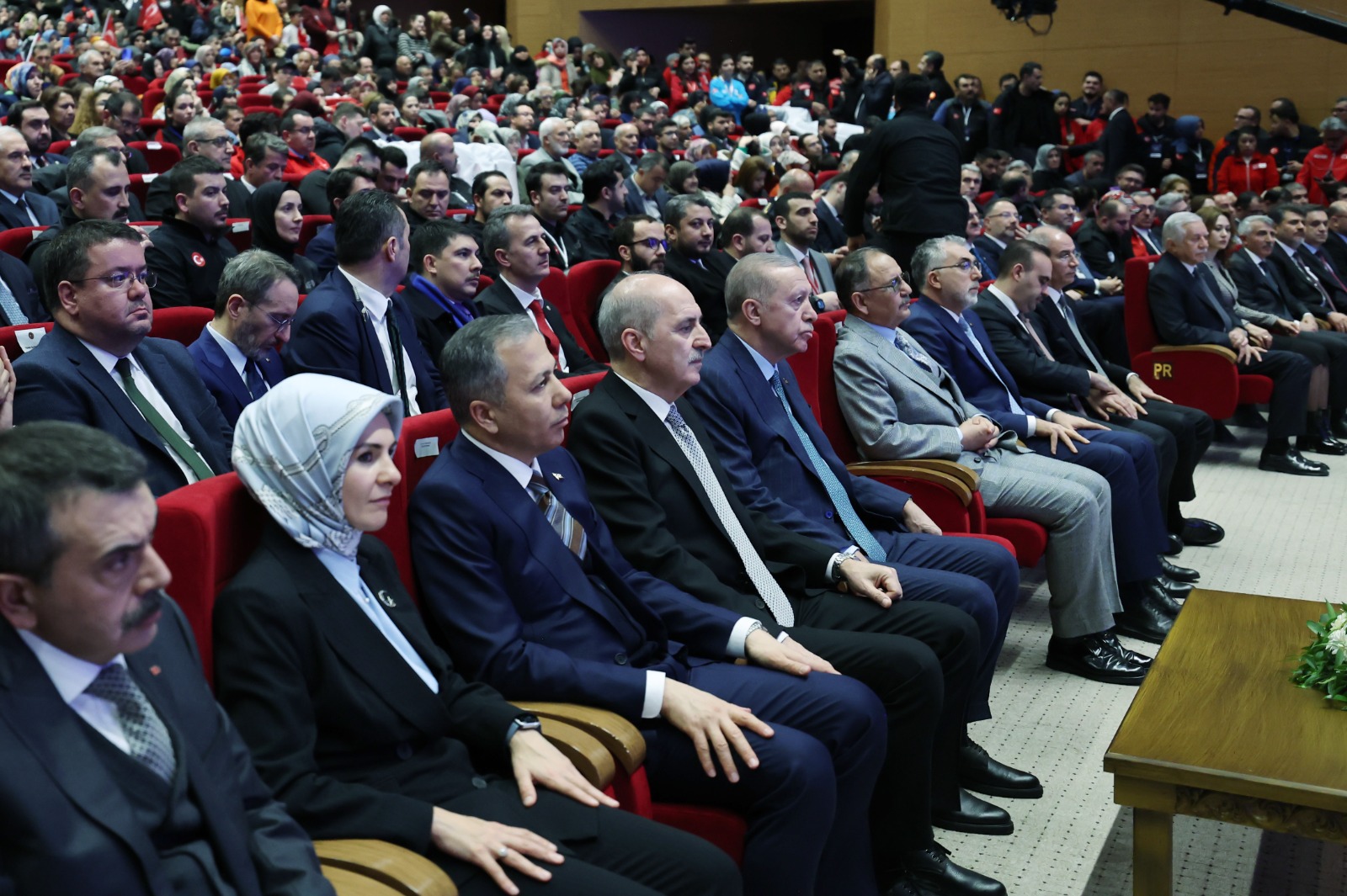 Programın açılış konuşmasını yapan MHP lideri Devlet Bahçeli, “6 Şubat 2023 tarihindeki deprem felaketinin üzerinden tam 1 yıl geçti. Buna rağmen acılarımız hala ilk günkü gibi tazeliğini muhafaza etmektedir. Depremde sayıları 53 bini aşan vatandaşımız hayatını kaybederken, 110 bine yakın vatandaşımız da yaralandı. Asrın felaketinde devlet – millet dayanışması imrenilecek şekilde tezahür etmiştir. Türkiye tek nefes, tek yürek halinde kenetlenmiştir. 1 yıl içinde felaketin derin izleri hızla silinmekle kalmamış, depremzede vatandaşlarımızın insani ihtiyaçları gecikmeksizin karşılanmıştır. Devletimiz tüm imkânlarını seferberlik ruhuyla harekete geçirmiştir. Hiçbir insanımız aç ve açıkta bırakılmamıştır. Sayın Cumhurbaşkanımızın öncülüğünde, Türkiye depremin vahim şokunu atlattı, yeni yüzyılda çok güçlü adımlar atıldı” cümlelerini kaydetti.