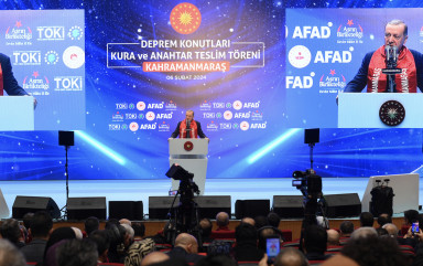 Deprem Konutları Kura ve Anahtar Teslim Töreni’nde konuşan Cumhurbaşkanı Recep Tayyip Erdoğan, “Asrın felaketinin altından asrın dayanışmasıyla kalkmayı başardık. Dünyanın en gelişmiş ülkelerinin bile, benzer felaketler karşısında yıllarca çaresiz kaldığını hep birlikte gördük, şahit olduk. Hamdolsun, biz depremin birinci yıl dönümünde enkazları kaldırılmış, şehirlerin yeniden inşasında önemli mesafe kat edilmiş, insanları hayata yeniden tutunmuş bir tabloya ulaştık” dedi.