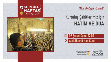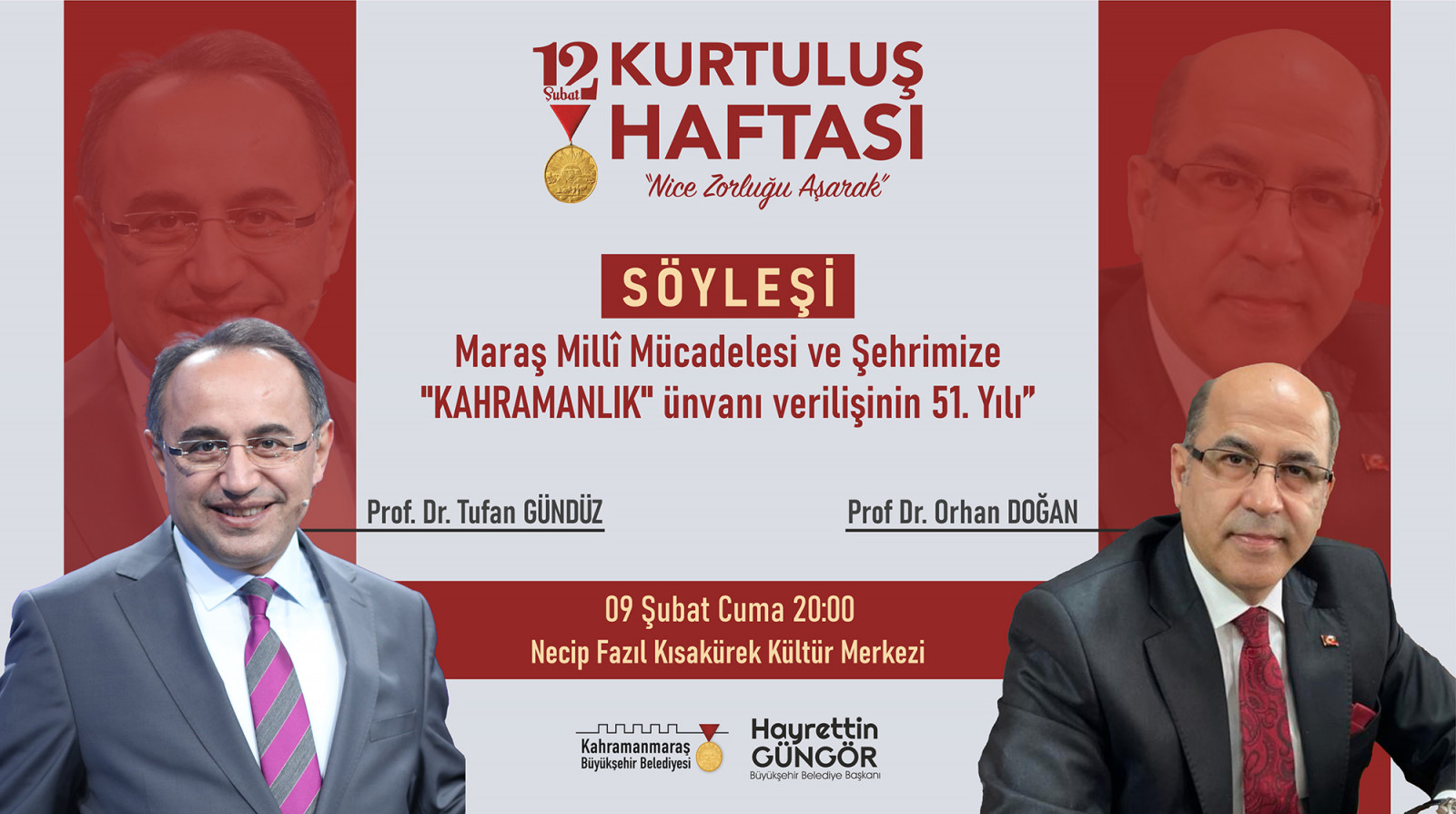 Kurtuluş Haftası etkinlikleri; 9 Şubat Cuma günü merkezde Abdülhamit Han Camii, ilçelerde ise Müftülüğün belirleyeceği camilerde milli mücadele kahramanları için yapılacak hatim ve dua ile başlayacak. Saat 14.00’da ise Necip Fazıl Kısakürek Kültür Merkezi’nde “12 Şubat ve Kurtuluş” temalı resim çalıştayı başlayacak. 9 Şubat Cuma günü etkinlikleri, saat 20.00’da Necip Fazıl Kısakürek Kültür Merkezi’nde Prof. Dr. Tufan Gündüz ve Prof. Dr. Orhan Doğan’ın katılımıyla gerçekleştirilecek “Maraş Milli Mücadelesi ve Şehrimize ‘Kahramanlık’ Ünvanı Verilişinin 51. Yılı” konulu söyleşiyle noktalanacak.