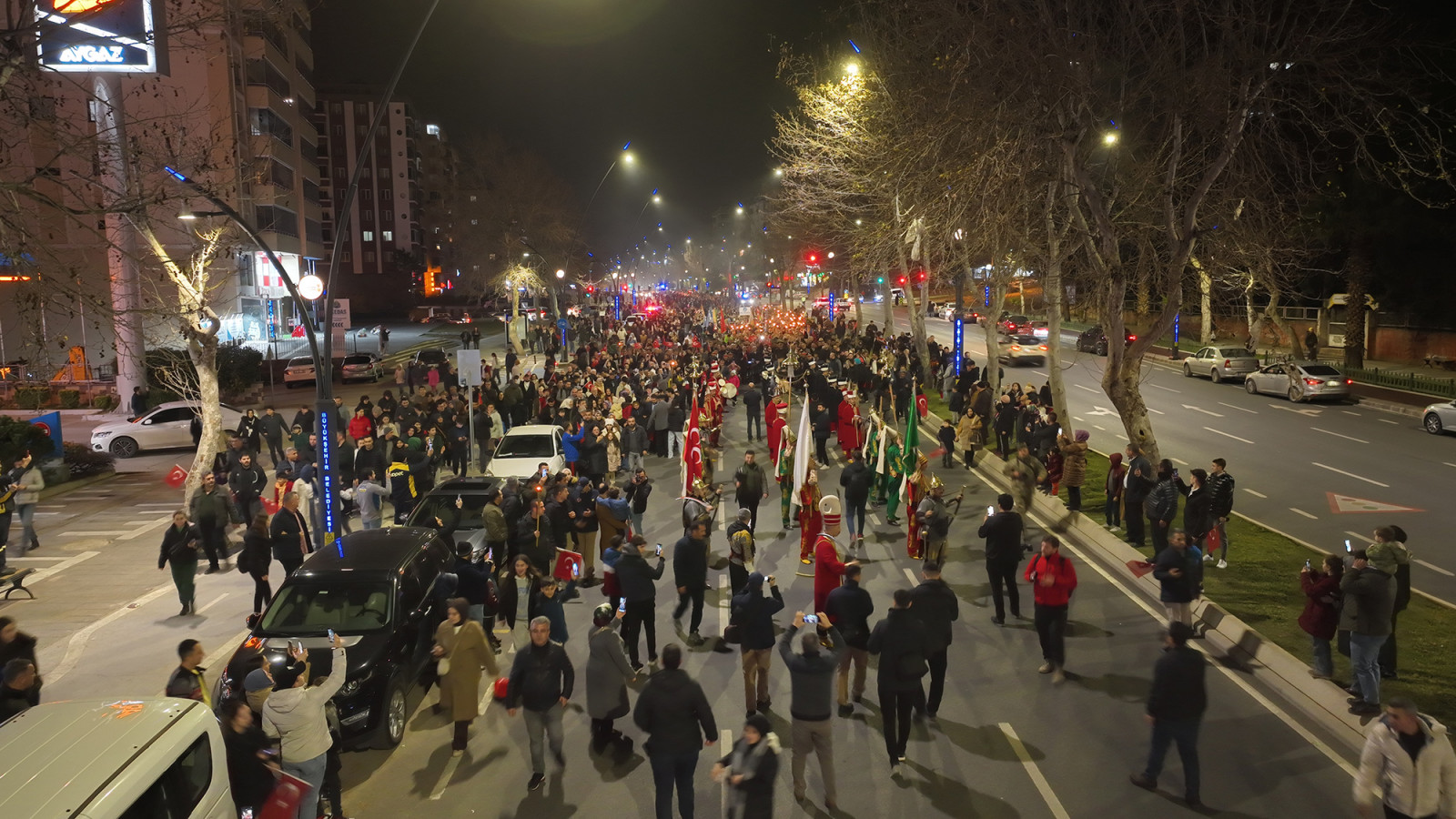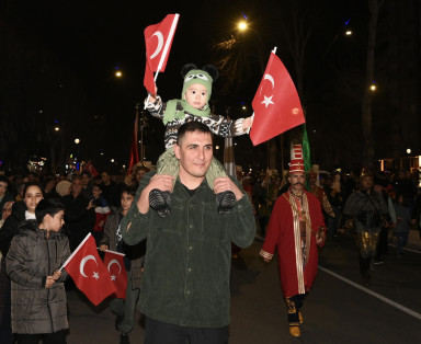 Kahramanmaraş’ın düşman işgalinden kurtuluşunun 104. yıl dönümü etkinlikleri çerçevesinde fener alayı düzenlendi. 66. Hükümet Tarım ve Orman Bakanı Prof. Dr. Vahit Kirişci, Vali Mükerrem Ünlüer, milletvekilleri, Büyükşehir Belediye Başkanı Hayrettin Güngör ve şehir protokolünün de yer aldığı yürüyüşte katılımcılar; meşaleler, marşlar ve açılan dev Türk Bayrağı eşliğinde Onikişubat Parkı’ndan Necip Fazıl Kısakürek Kültür Merkezi’ne kadar yürüdü. Renkli anlara sahne olan kortej yürüyüşüne binlerce vatandaş katıldı. Kurtuluş Haftası etkinlikleri, Necip Fazıl Kısakürek Kültür Merkezi’nde “Maraş Gülü ve Peşgir” ile “Kurtuluş” temalı fotoğraf sergisinin açılışıyla devam etti. Şehir protokolü, açılışın ardından sergileri ziyaret ederek bilgiler aldı.