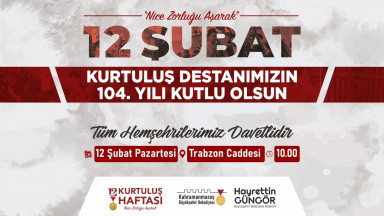 Şehrin düşman işgalinden kurtuluşunun yıl dönümü olan 12 Şubat Pazartesi günü Trabzon Caddesi’nde çeşitli etkinlikler gerçekleştirilecek. Saat 10.00’da başlayacak etkinliklere tüm vatandaşlar davet edildi.