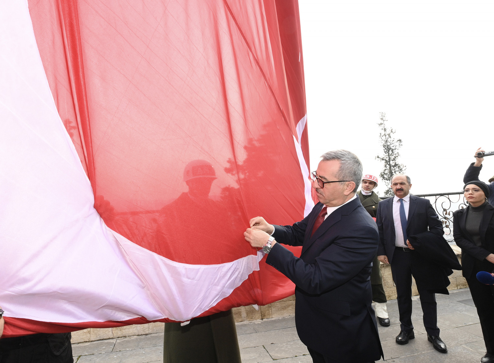 Kurtuluş Günü etkinlikleri çerçevesinde şehrin nişanesi olan kırmızı şeritli İstiklal Madalyası, Büyükşehir Belediye Başkanı Hayrettin Güngör tarafından Türk Bayrağı’na takılarak göndere çekildi.