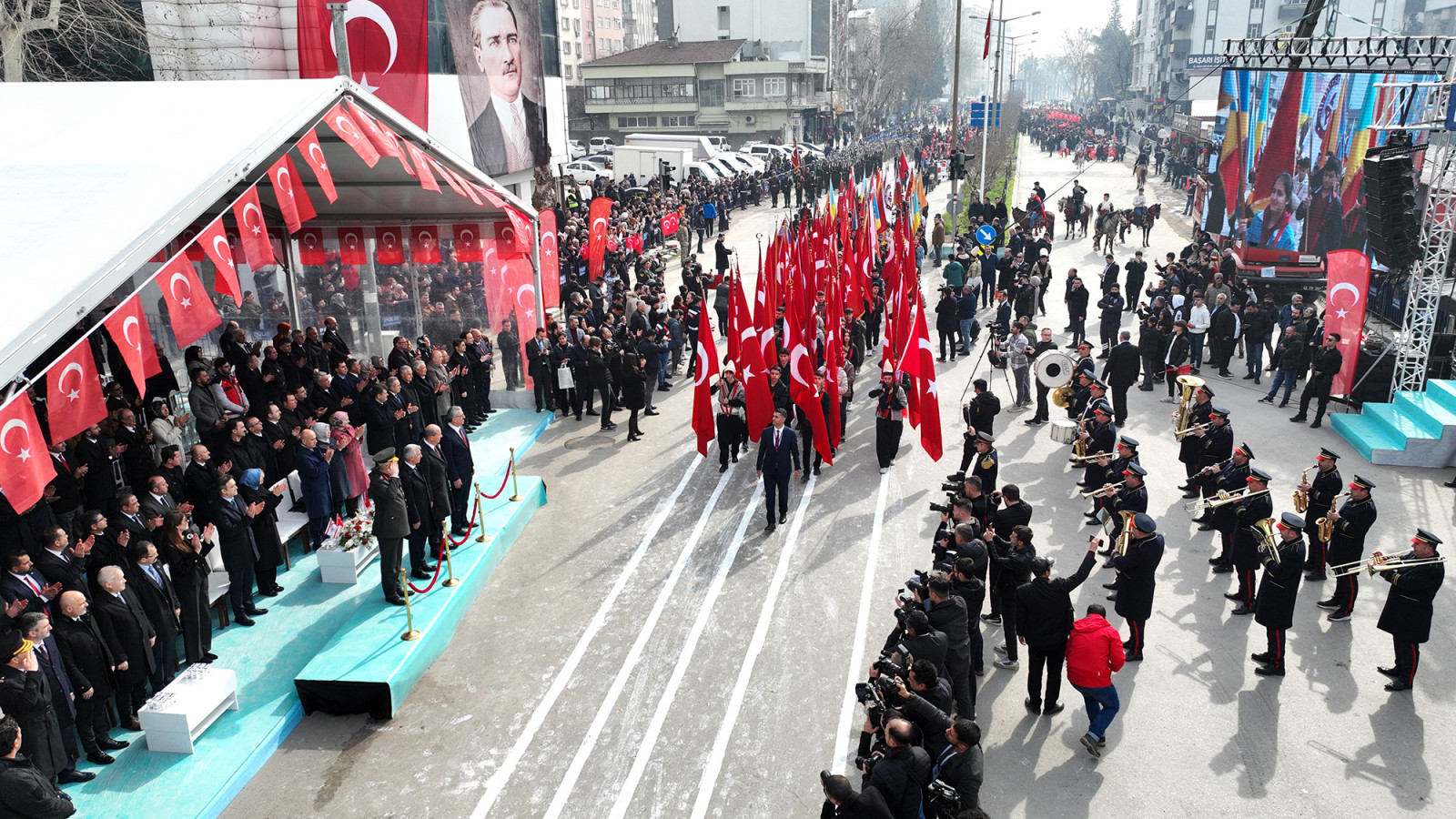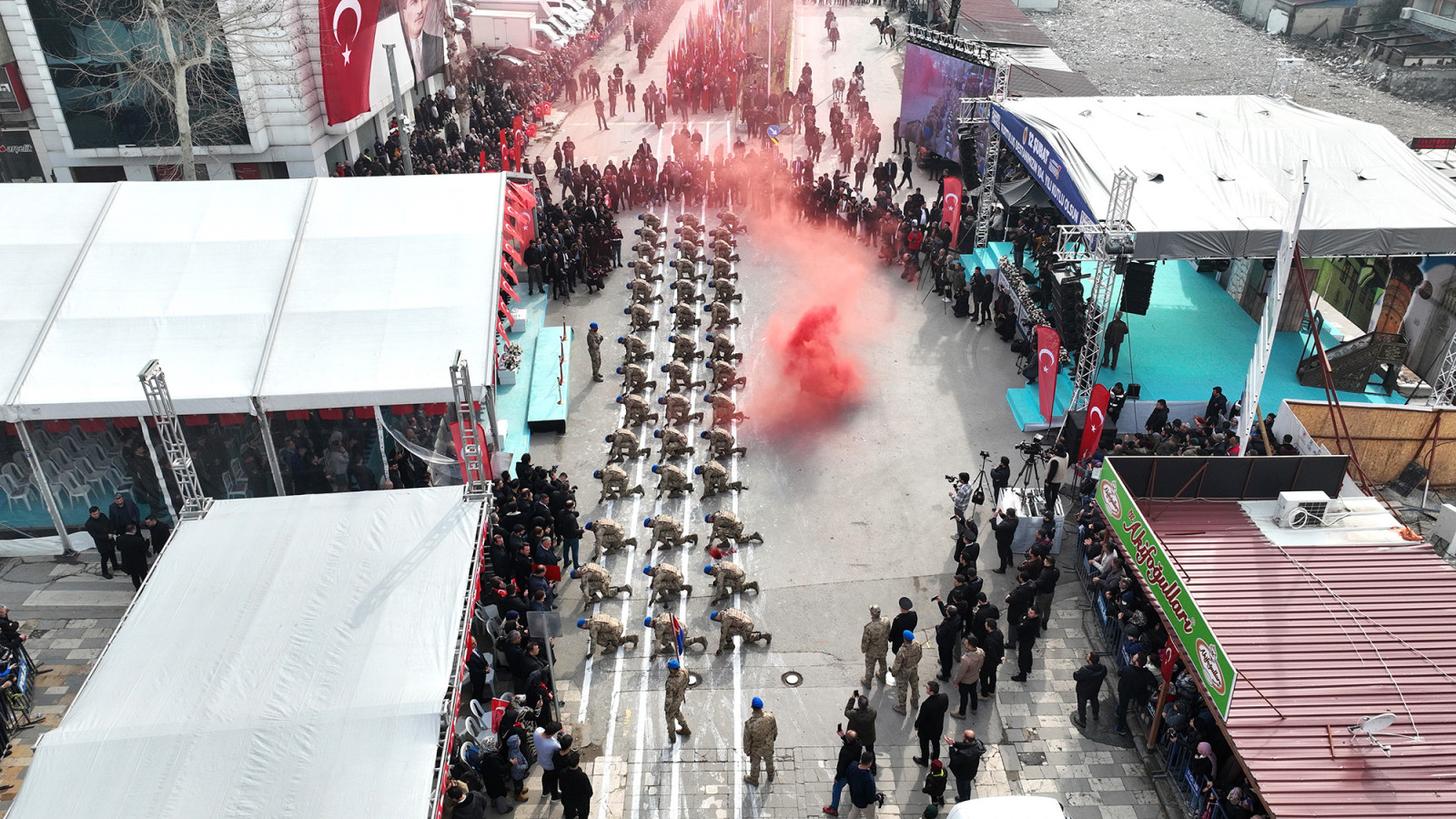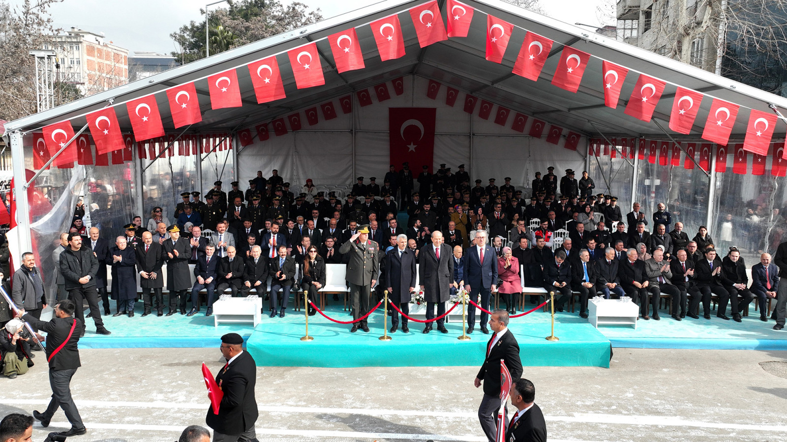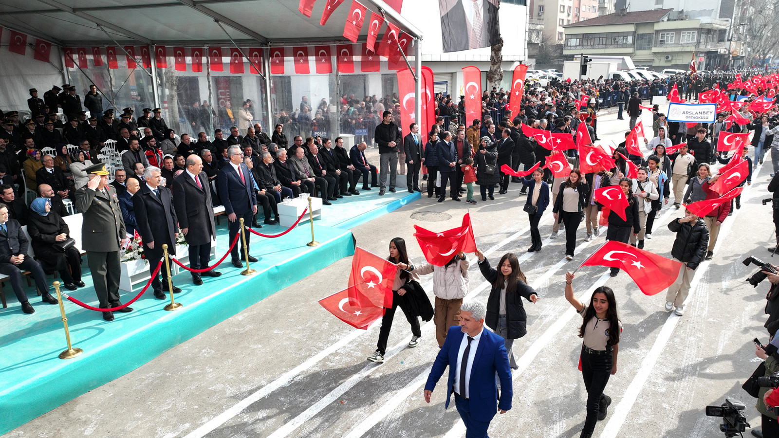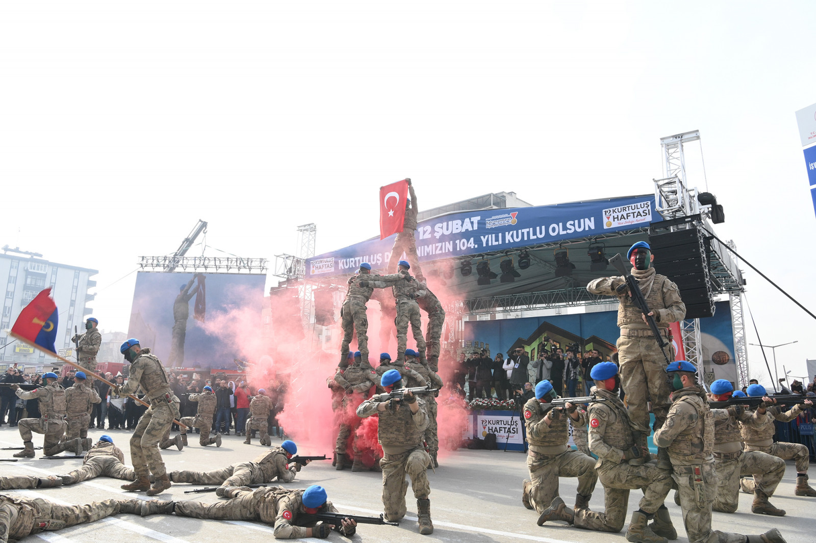 Kahramanmaraş’ın düşman işgalinden kurtuluşunun 104. yıl dönümünde Trabzon Caddesi’nde çeşitli etkinlikler düzenlendi. Vatandaşların yoğun ilgi gösterdiği programda; Kuzey Kıbrıs Türk Cumhuriyeti Cumhurbaşkanı Ersin Tatar, Vali Mükerrem Ünlüer, Garnizon Komutanı Tuğgeneral Emin Mehmet Terzioğlu ve Büyükşehir Belediye Başkanı Hayrettin Güngör, araç üzerinde alandaki katılımcıları selamlayarak Kurtuluş Bayramı’nı tebrik etti. 66. Hükümet Tarım ve Orman Bakanı Prof. Dr. Vahit Kirişci, milletvekilleri, rektörler, Cumhuriyet Başsavcısı Ramazan Murat Tiryaki, kaymakamlar, İl Jandarma Komutanı Tuğgeneral Gökhan İnan, İl Emniyet Müdürü Nurettin Gökduman, AK Parti Kahramanmaraş Büyükşehir Belediye Başkan Adayı Fırat Görgel, ilçe belediye başkanları, siyasi parti ve STK temsilcilerinin de yer aldığı program, saygı duruşu ve İstiklal Marşı’nın okunmasıyla başladı. Kur’an-ı Kerim Tilavetinin de yapıldığı programda; milli mücadele kahramanları, şehitler ve 6 Şubat depremlerinde hayatını kaybeden vatandaşlar dualarla yâd edildi. Kısa film gösterimi, “Kurtuluş Destanı” adlı tiyatro gösterisi, şiir dinletisi, jandarma komando tüfekli hareketler gösterisi ve Jandarma Özel Harekât üzüm salkımı gösterilerinin de gerçekleştirildiği Kurtuluş Haftası etkinlikleri, geçit töreniyle noktalandı.