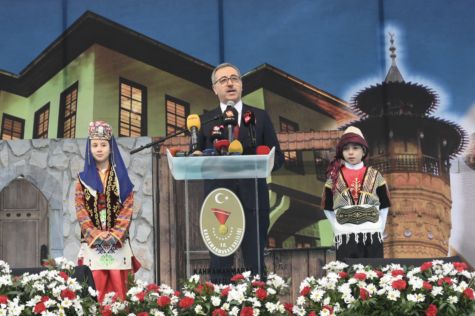 Programda konuşan Vali Mükerrem Ünlüer, “Maraş, Türk Millî Mücadelesinin başladığı ve istiklal meşalesinin yakıldığı istiklalin başkentidir. 104 yıl önce Maraş halkı, işgal kuvvetlerine karşı tüm olumsuzluklara rağmen birlik ve beraberliği, inancı ve onurlu mücadelesiyle Anadolu’nun dört bir yanına cesaret veren bir direniş örneği sergilemiştir. 22 gün 22 gece süren bu mücadelede, Maraşlı tek vücut olmuş, işgalcileri yerle bir etmiştir. Bu zafer aynı zamanda Kurtuluş Savaşı’mızın da ilk kıvılcımı olmuştur. Bu olağanüstü zaferi, şehrimize kazandırarak adımızı ‘Kahraman’ yapan Sütçü İmam, Arslanbey, Rıdvan Hoca, Senem Ayşe gibi tüm milli mücadele kahramanlarımıza fedakârlığı için şükranlarımı sunuyorum” dedi.