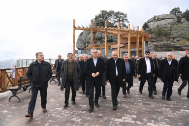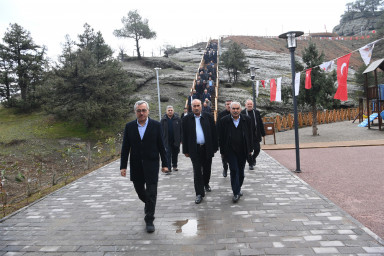 Programda yaptığı konuşmada, şehrin doğal güzelliklerinden Ali Kayası’nda hayata geçirilen cam teras projesinden bahseden Başkan Hayrettin Güngör, “Göreve geldiğimizde şehrimizin turizm potansiyelini artırmak için projelerimizi peyderpey hayata geçirmeye başladık. Güçlü hikâyesi ve tarihiyle şehrimizin en önemli doğal güzelliklerinden Ali Kayası’nı da turizme kazandırmamız gerektiğini kararlaştırdık ve projemizi hazırladık. İhalemizi yaptık ve cam terasın inşasına başladık. 2023 yılının Nisan ayında bu projemizi tamamlamayı hedefliyorduk ancak 6 Şubat depremleri dolayısıyla bu mümkün olmadı. 2023 yılının sonuna doğru burada çalışmalarımızı tamamlayarak Ali Kayası Cam Teras’ı hizmete açtık. Buraya restoran, ahşap yürüyüş alanları, cam teras ve otopark kazandırdık. Ayrıca buraya ulaşım için standardı oldukça yüksek 20 kilometrelik bağlantı yolu oluşturduk” dedi.