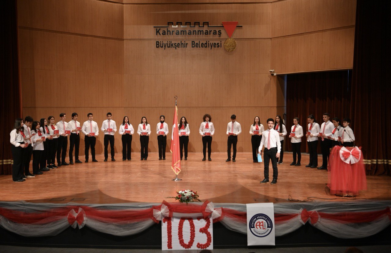 Kahramanmaraş Büyükşehir Belediye Başkanı Hayrettin Güngör, İstiklal Marşı’nın kabulünün 103. yıl dönümü ve Mehmet Akif Ersoy’u Anma Günü münasebetiyle Atatürk Anadolu Lisesi tarafından düzenlenen programa katıldı. Mehmet Akif Ersoy Kültür Merkezi’nde düzenlenen programda; Vali Mükerrem Ünlüer, Garnizon Komutanı Tuğgeneral Emin Mehmet Terzioğlu, Cumhuriyet Başsavcısı Ramazan Murat Tiryaki, Dulkadiroğlu Kaymakamı Dr. Fatih Çelikkaya, Onikişubat Kaymakamı Salih Çiğdem, İl Jandarma Komutanı Tuğgeneral Gökhan İnan, İl Emniyet Müdürü Nurettin Gökduman, Dulkadiroğlu Belediye Başkanı Necati Okay, kurum amirleri, STK temsilcileri, okul idarecileri, öğretmenler, öğrenciler ve vatandaşlar da yer aldı. Saygı duruşu ve İstiklal Marşı’nın okunmasıyla başlayan programda, şiir dinletileri ve sinevizyon gösterimi gerçekleştirildi.