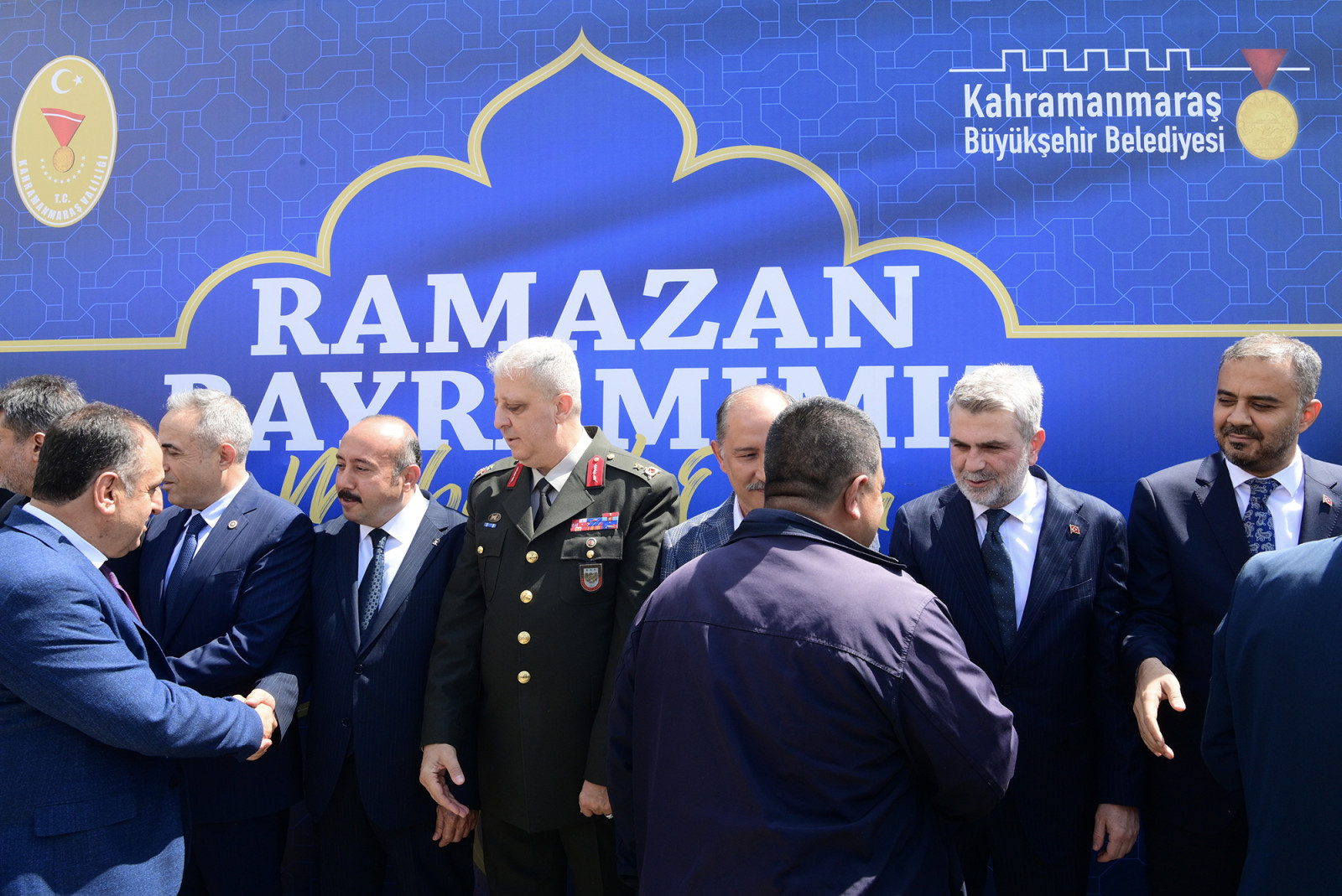 Kahramanmaraş Büyükşehir Belediye Başkanı Fırat Görgel, Milli İrade Meydanı’nda düzenlenen geleneksel protokol bayramlaşma törenine katıldı. Vali Mükerrem Ünlüer, Kahramanmaraş Milletvekilleri Ömer Oruç Bilal Debgici, Dr. Tuba Köksal, Prof. Dr. Mehmet Şahin, Doç. Dr. Zuhal Karakoç Dora ve Dr. İrfan Karatutlu, Garnizon Komutanı Tuğgeneral Emin Mehmet Terzioğlu, ilçe belediye başkanları, kurum müdürleri, siyasi parti ve STK temsilcilerinin de yer aldığı programda protokol üyeleri ve vatandaşların bayramını tebrik eden Başkan Görgel, “Ramazan ayının akabinde hamdolsun bayrama kavuştuk. Şehir protokolümüz ve vatandaşlarımızla bayramlaştık. Çok güzel birlik beraberlik havası hâkim. Geçtiğimiz seneye göre bu bayramda koşullarımız hamdolsun çok daha iyi. Her geçen gün devlet millet dayanışmasıyla şehrimizi çok daha güzel ve yaşanabilir bir hale getiriyoruz. Tabi içimiz hala buruk. 6 Şubat depremlerinde kaybettiğimiz kardeşlerimizin acısı hala kalbimizde. Bu vesileyle depremlerde kaybettiğimiz canlarımıza bir kez daha Allah’tan rahmet diliyoruz. Tüm vatandaşlarımızın ve İslam âleminin Ramazan Bayramı’nı tebrik ediyorum” diye konuştu.