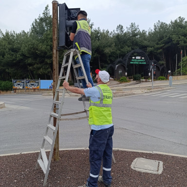Büyükşehir Belediyesi, şehir merkezi ve ilçelerde trafikte yaya ve sürücü güvenliğini sağlamak için trafik işaret ve işaretçileri ile sinyalizasyon sistemlerinin bakım ve onarımını kesintisiz sürdürüyor.