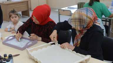 Büyükşehir Belediyesinin kadın atölyelerinde eğitimler kesintisiz sürüyor. Kadınlar, atölyelerde el becerilerini geliştirmenin yanı sıra sosyalleşiyor, yeni meslekler ediniyor ve aile ekonomisine de katkı sağlama fırsatı buluyor.