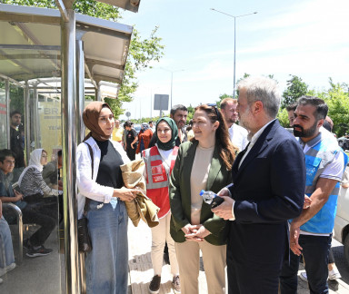 8 ve 9 Haziran tarihlerinde düzenlenen Yükseköğretim Kurumları Sınavı’na giren öğrencilere ücretsiz toplu taşıma hizmeti sağlayan Kahramanmaraş Büyükşehir Belediyesinin veliler için Kahramanmaraş Sütçü İmam Üniversitesi ve Dulkadiroğlu Hacı Bektaş-ı Veli Caddesi’nde oluşturduğu bekleme noktaları vatandaşların takdirini kazandı. Sınava giren çocuklarını bu alanlarda bekleme imkânı bulan vatandaşlara ikramlarda bulunuldu. Ayrıca Büyükşehir Belediyesinin mobil ekipleri her iki gün de sahada olarak sınav merkezlerinde velilere çeşitli ikramlar yaptı. Sağlanan hizmetlerden duyduğu memnuniyeti belirten vatandaşlar, Büyükşehir Belediyesine teşekkür etti.