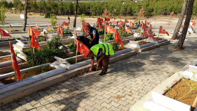 Büyükşehir Belediyesi, Kurban Bayramı öncesi şehitlik ve mezarlıklarda temizlik ve peyzaj uygulamaları gerçekleştirdi. Mezarlıklarda oluşturulan ikram ve danışma noktaları da bayram sürecinde vatandaşlara hizmet verecek.