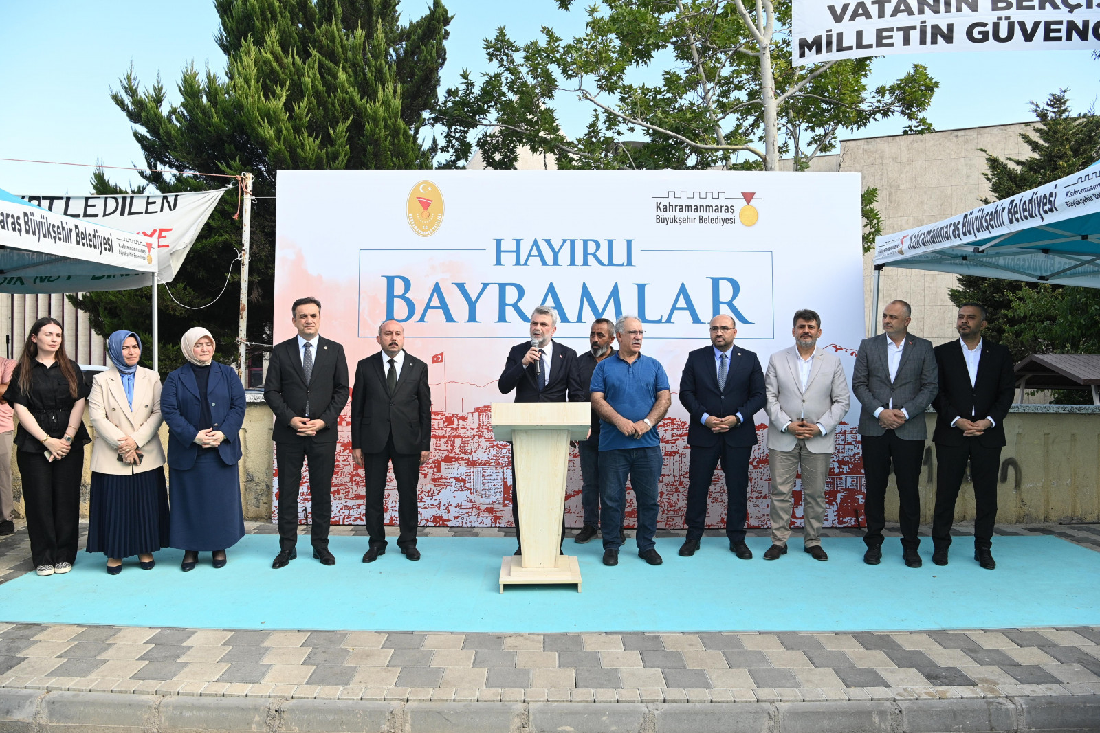 Kurban Bayramı dolayısıyla ziyaret ve bayramlaşma programlarını sürdüren Kahramanmaraş Büyükşehir Belediye Başkanı Fırat Görgel, Necip Fazıl Kısakürek Kültür Merkezi önünde düzenlenen Sivil Toplu Kuruluşları Bayramlaşma Töreni’ne katıldı. AK Parti Kahramanmaraş Milletvekilleri Ömer Oruç Bilal Debgici, Dr. Tuba Köksal, Mevlüt Kurt ve Prof. Dr. Mehmet Şahin, Onikişubat Belediye Başkanı Hanifi Toptaş, Andırın Belediye Başkanı Ahmet Sinan Gökşen, AK Parti İl Başkanı Cüneyt Doğan ve İl Kadın Kolları Başkanı Asuman Yavuz’un da yer aldığı programda STK temsilcileri ve üyeleriyle bir araya gelen Başkan Fırat Görgel, tüm katılımcıların Kurban Bayramı’nı tebrik etti.