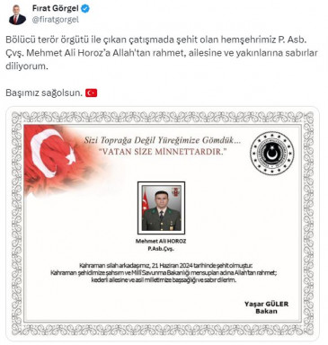 Kahramanmaraş Büyükşehir Belediye Başkanı Fırat Görgel, Pençe – Kilit operasyonu bölgesinde arama tarama faaliyeti sırasında bölücü terör örgütü mensupları ile sağlanan temasta şehit düşen Kahramanmaraşlı Mehmetçik Piyade Astsubay Çavuş Mehmet Ali Horoz için taziye mesajı yayımladı. Başkan Fırat Görgel mesajında, “Bölücü terör örgütü ile çıkan çatışmada şehit olan hemşehrimiz P. Asb. Çvş. Mehmet Ali Horoz’a Allah'tan rahmet, ailesine ve yakınlarına sabırlar diliyorum. Başımız sağ olsun” ifadelerine yer verdi.