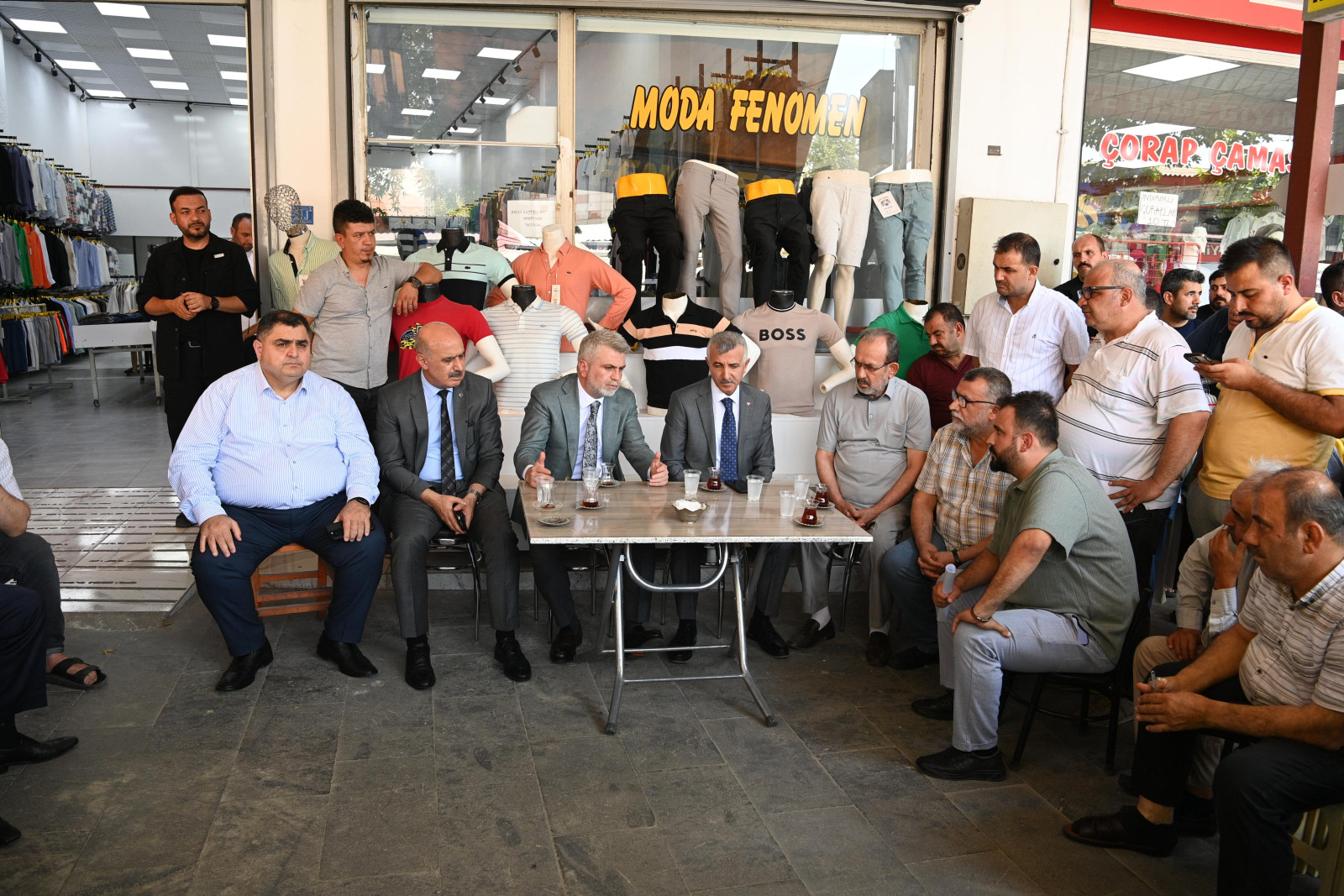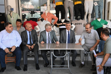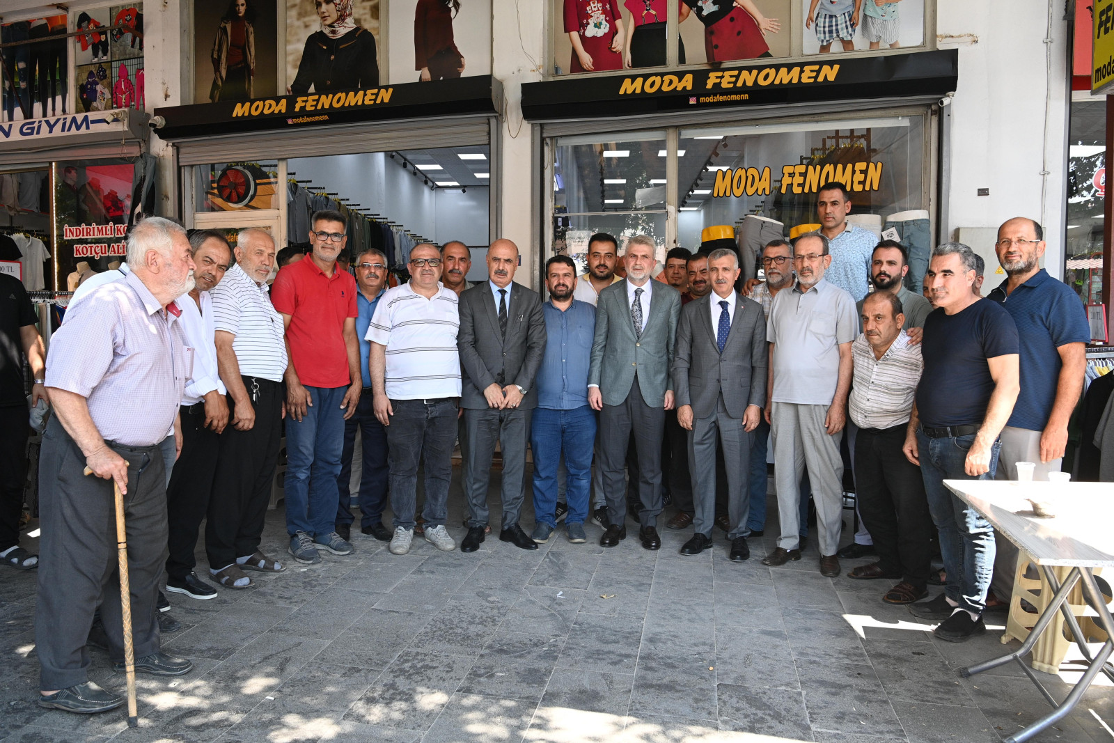 Vatandaşların sorunlarını kendi sorunu olarak gören ve çözüme kavuşturmak için yoğun gayret gösteren Kahramanmaraş Büyükşehir Belediye Başkanı Fırat Görgel, Derepazarı esnafıyla bir araya geldi. Vali Mükerrem Ünlüer, İl Emniyet Müdürü Nurettin Gökduman ve Büyükşehir Belediyesi Meclis Üyesi Mehmet Beşen’in de yer aldığı ziyarette esnafların sorun ve taleplerini dinleyerek çözüme ilişkin istişarelerde bulunan Başkan Fırat Görgel, “Bizler daima vatandaşlarımızın sorununu kendi sorunumuz olarak görüyor ve çözüme kavuşturmak için var gücümüzle çalışıyoruz. Geçtiğimiz gün Küçük Sanayi Sitesi esnafımızla bir araya gelmiştik. Şimdi de Sayın Valimiz ve İl Emniyet Müdürümüz ile Derepazarı esnafımızı ziyaret ettik. Birbirimizi daha iyi anlayarak deprem sonrası süreçlerin üstesinden birlikte gelmeye gayret ediyoruz. İnşallah esnaflarımızın sorunlarını bir an önce çözüme kavuşturacak ve yeni Kahramanmaraş’ın inşa sürecinde hep birlikte elimizden gelen gayreti göstereceğiz” diye konuştu.