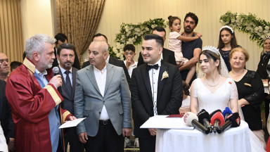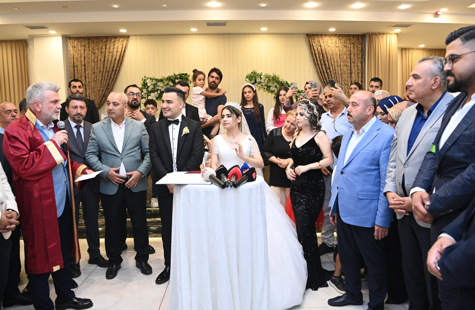 Büyükşehir Belediye Başkanı Fırat Görgel, 6 Şubat depremlerinde annesi ve kardeşleriyle birlikte bir bacağını da kaybeden Tuğçe Kalmış ile Enes Kılavuz’un nikâh akitlerini gerçekleştirdi.
