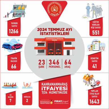 Trafik kazası, yangın ve boğulma gibi her türlü acil müdahale gerektiren durumda vatandaşların yanında olan; profesyonel kadrosu, modern araç ve ekipmanlarıyla itfai olaylara hızlı ve etkin bir şekilde müdahale ederek olası can ve mal kayıplarının önüne geçen Kahramanmaraş Büyükşehir Belediyesi İtfaiyesi, Temmuz ayında da vatandaşların yardım çağrısına hızlı ve etkin bir şekilde koştu. Son teknolojiyle donatılmış Tablet Navigasyon Sistemleri’yle ihbar akış süresini 5 kat daha kısaltan Büyükşehir Belediyesi İtfaiye Dairesi Başkanlığı, Temmuz ayında 23 şube, 346 personel ve 64 araçla; bin 266 yangın, 66 trafik kazası, 7 su baskını, 2 boğulma ve bin 643 itfai olaya müdahalede bulundu. Vatandaşların afet ve acil durumlara karşı bilinç ve müdahale hızını artırmak için de toplam 551 kişiye eğitim verilerek tatbikat gerçekleştirildi. İtfaiye Dairesi Başkanlığından yapılan açıklamada, “Profesyonel kadromuz, modern araç ve ekipmanlarımızla her türlü afet ve acil durumda vatandaşlarımızın yanındayız” ifadelerine yer verildi.